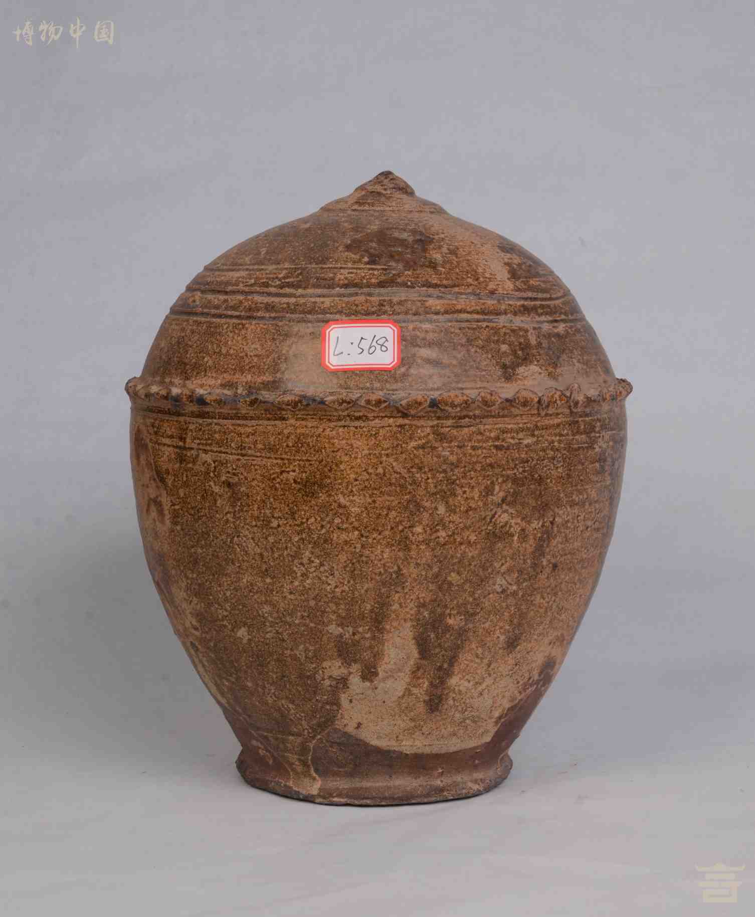 明褐釉穹顶铉纹弧腹陶谷仓罐