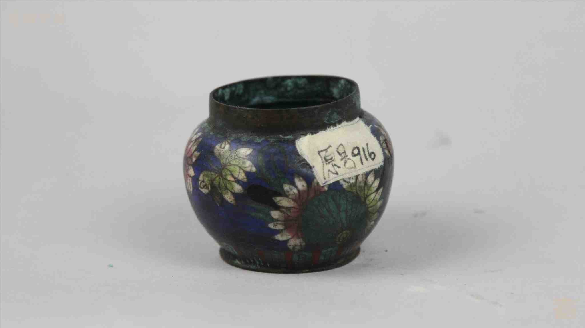 民国残铜胎掐丝珐琅罐