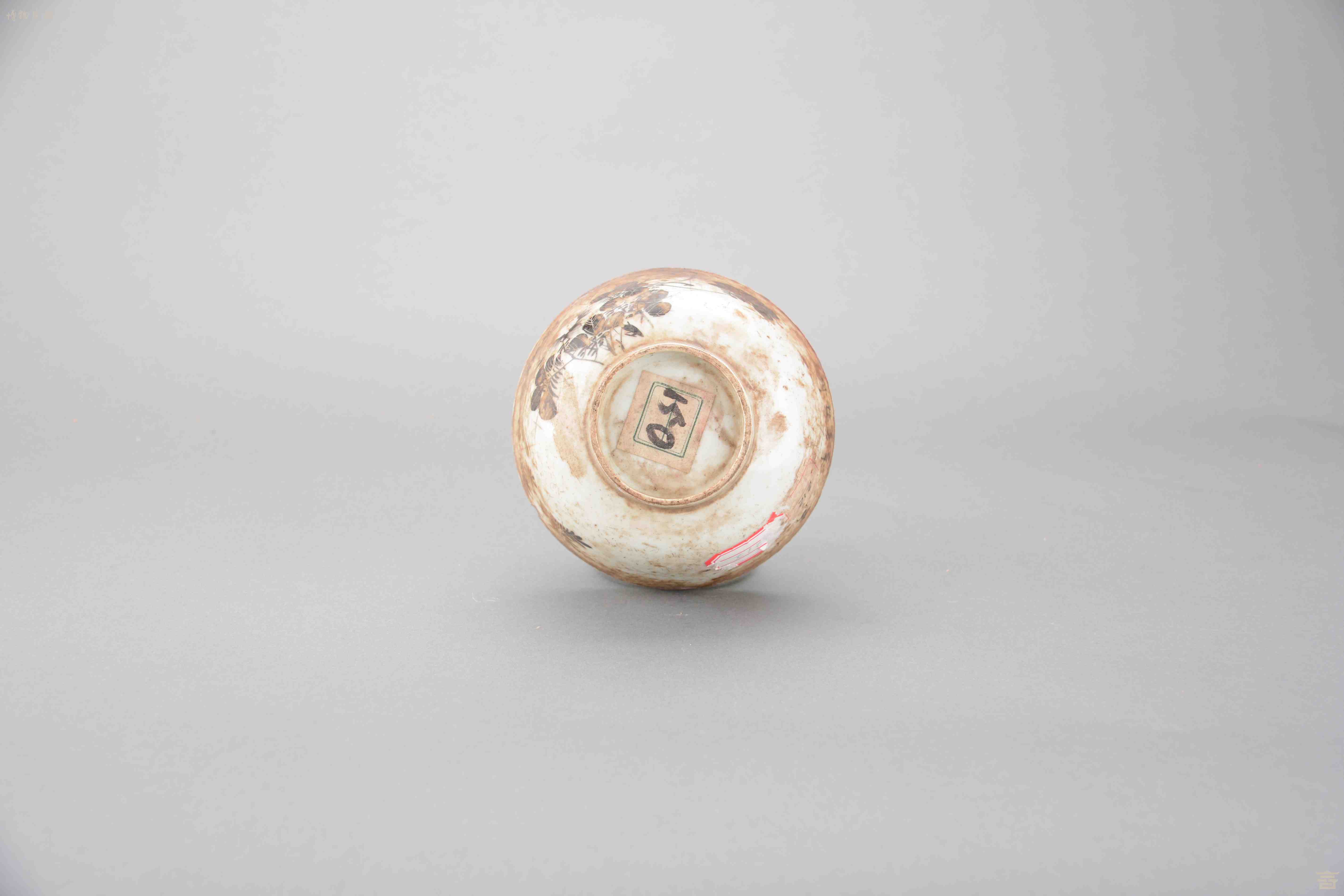 > 清白釉花鸟纹瓷碗