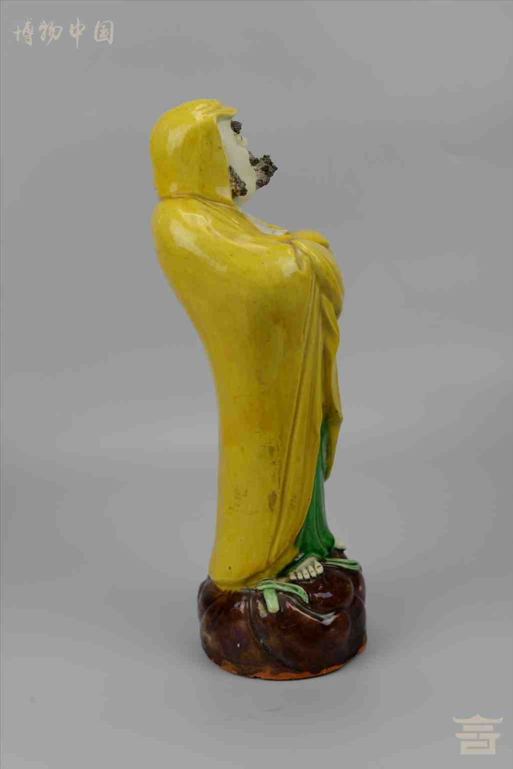 > 清素三彩达摩瓷像