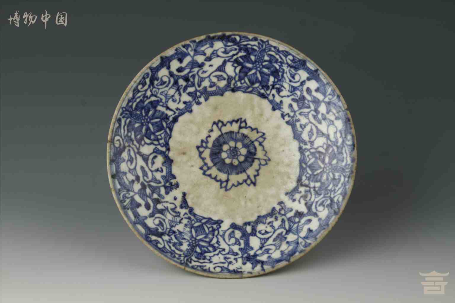 > 清安溪吉山窑印青花缠枝花卉纹瓷盘