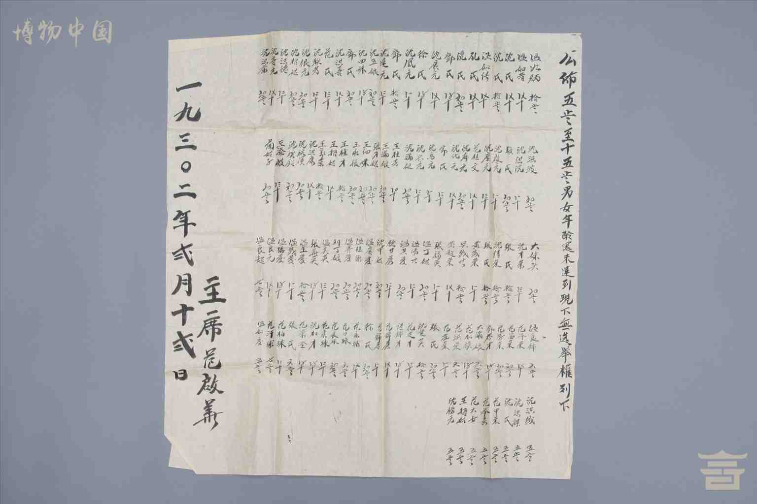 1932年2月12日永定采地乡苏维埃政府公布的有选举权和无选举权人员名单