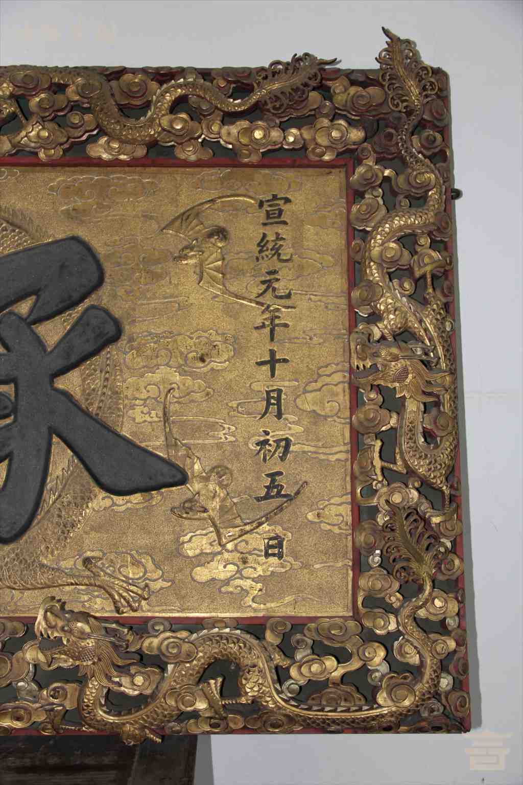 清宣统“承先睦族”铭漆金九龙匾