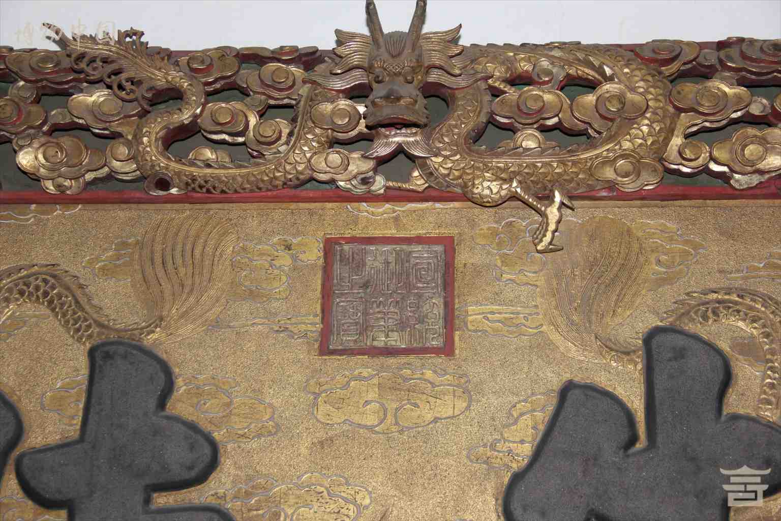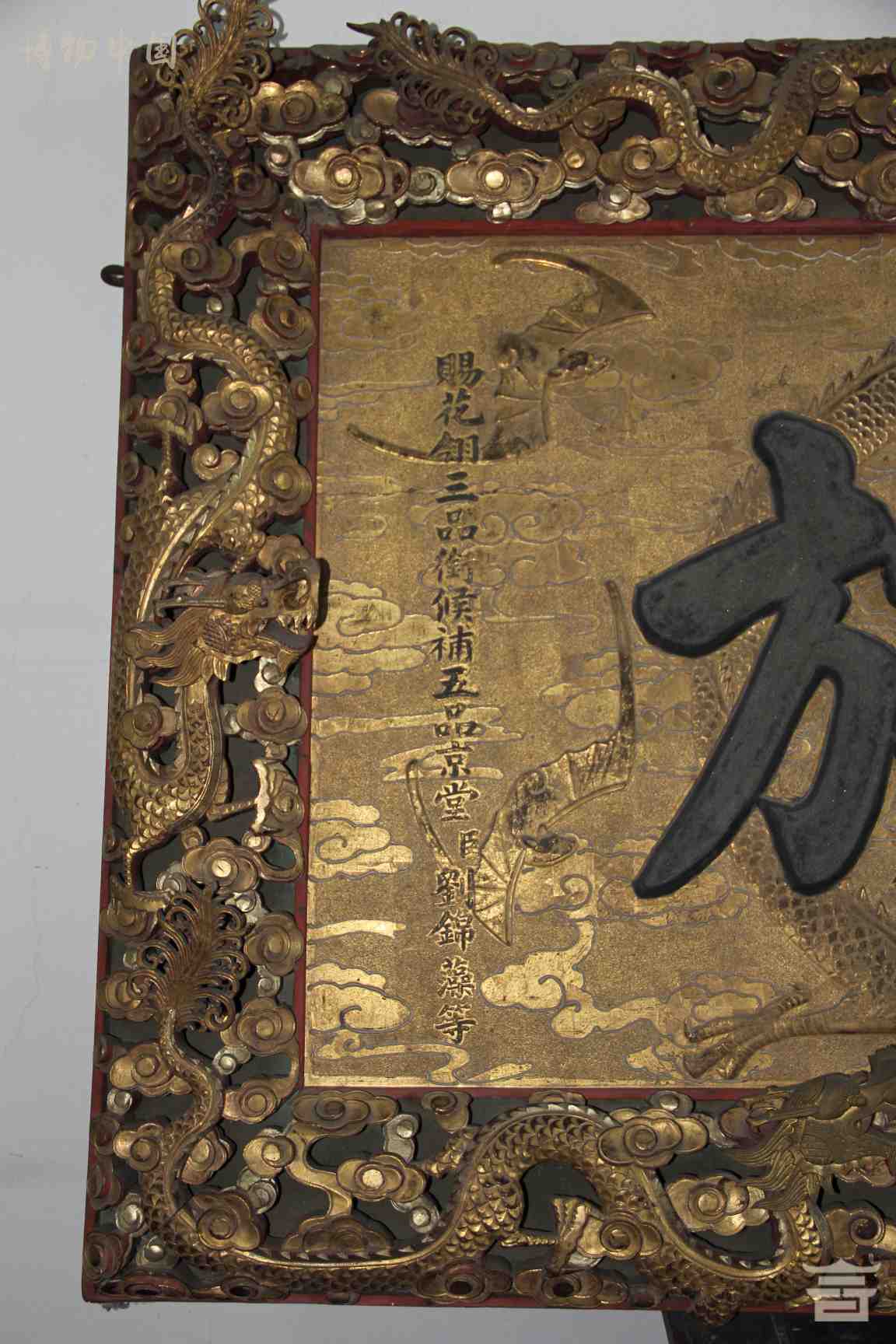 > 清宣统“承先睦族”铭漆金九龙匾