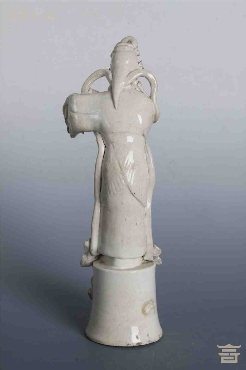 > 清漳窑米色白釉瓷何仙姑立像