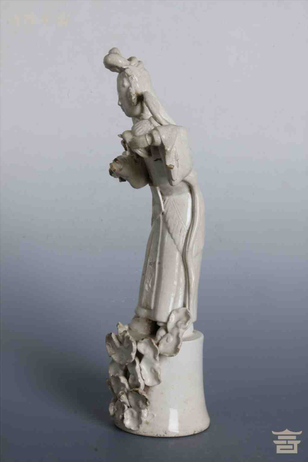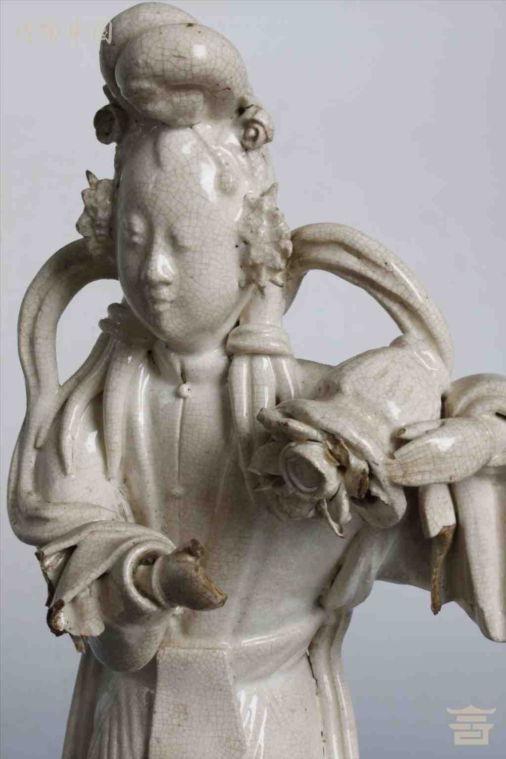 清漳窑米色白釉瓷何仙姑立像