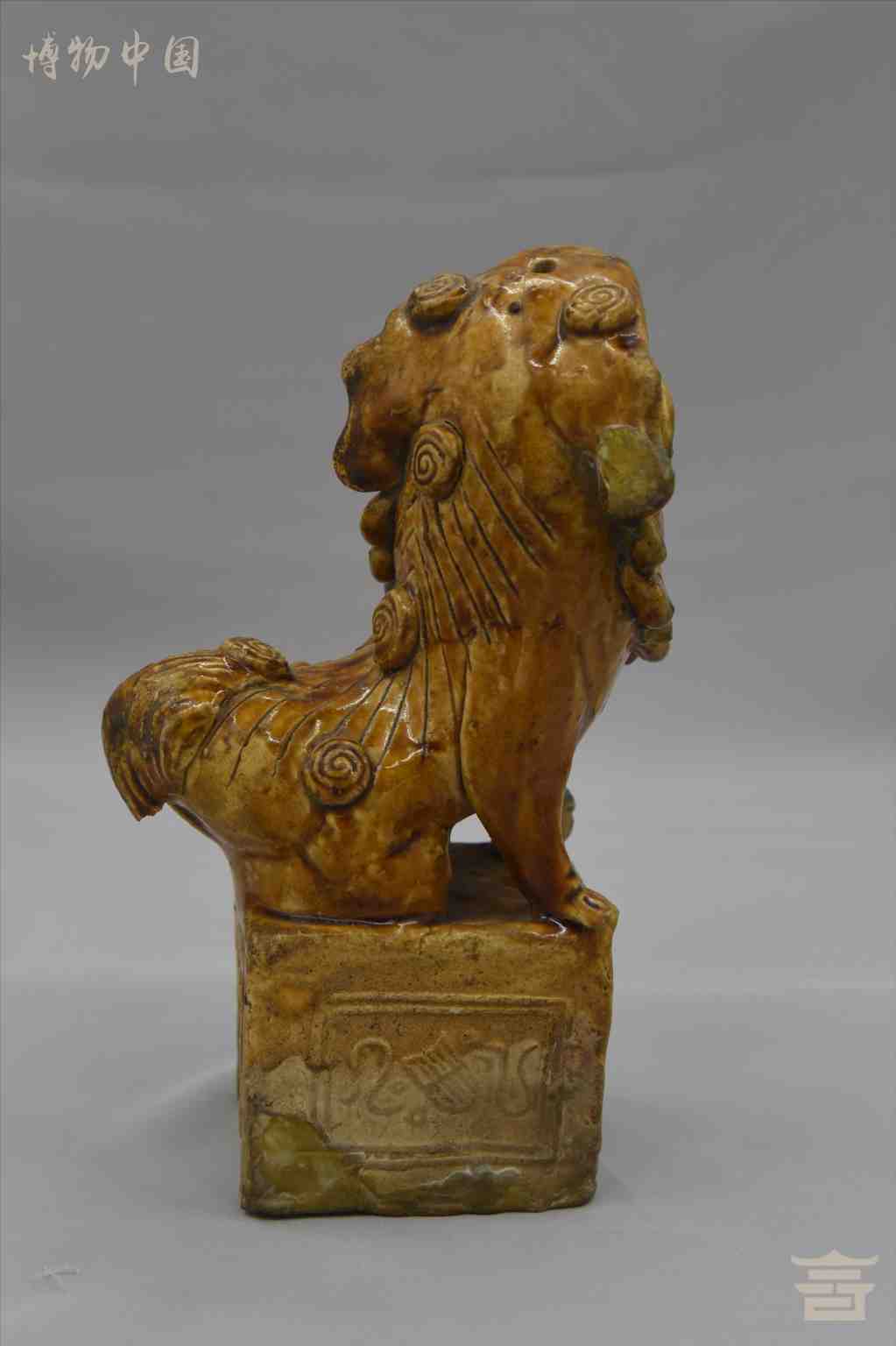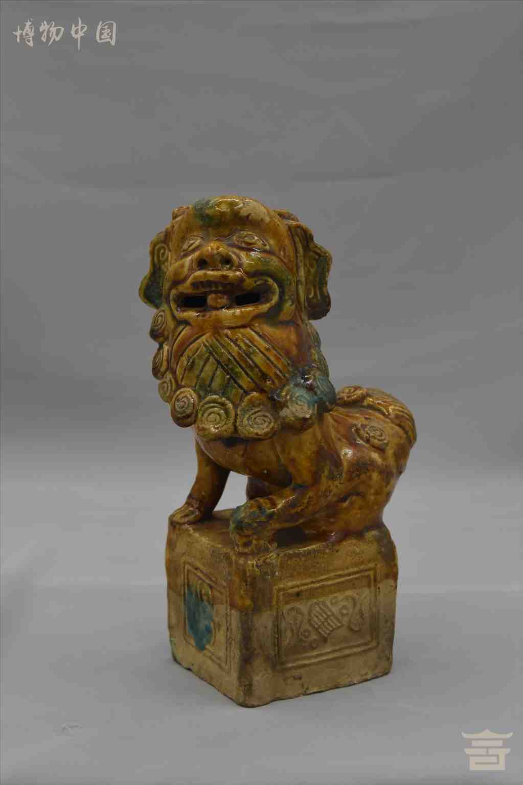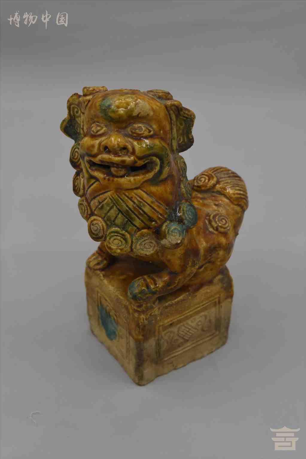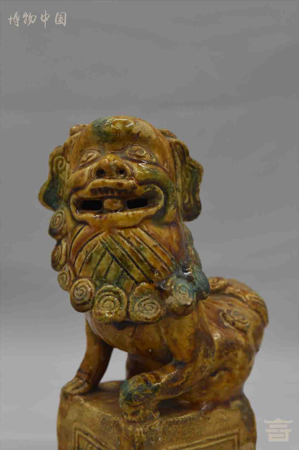 > 晚清酱釉绿彩陶狮子