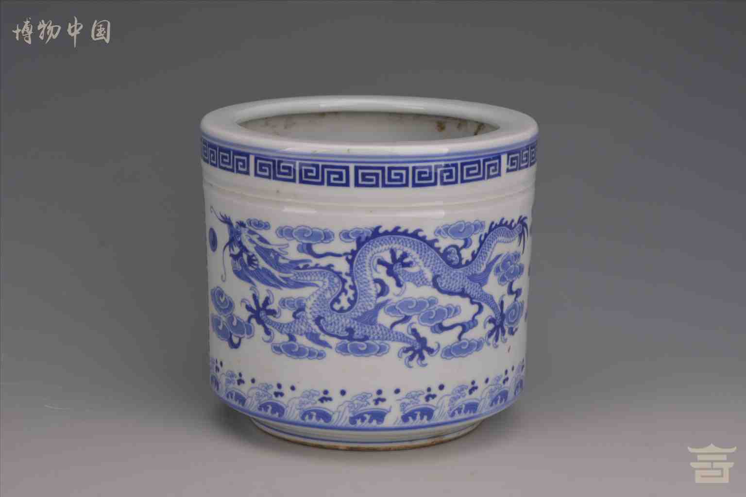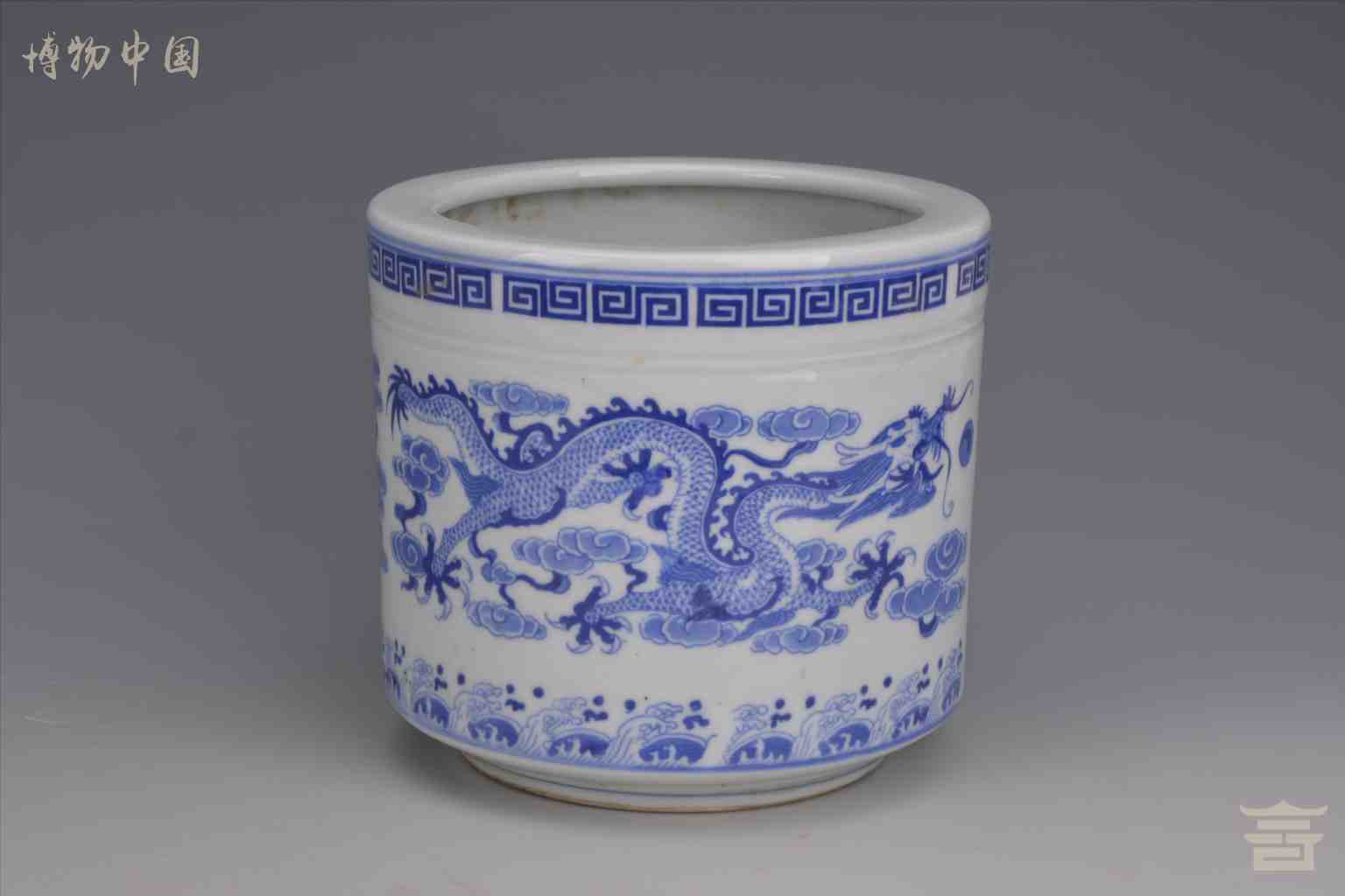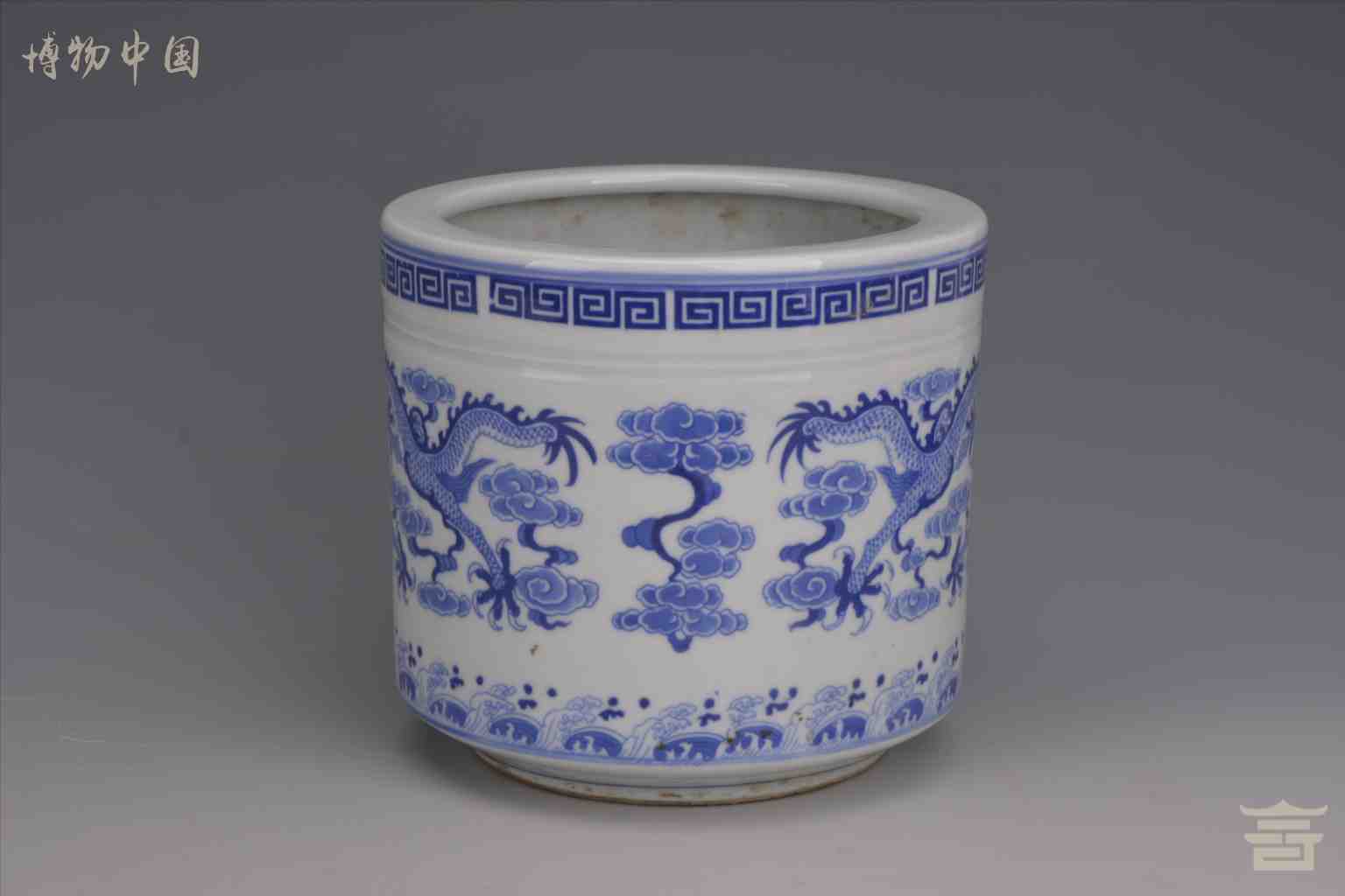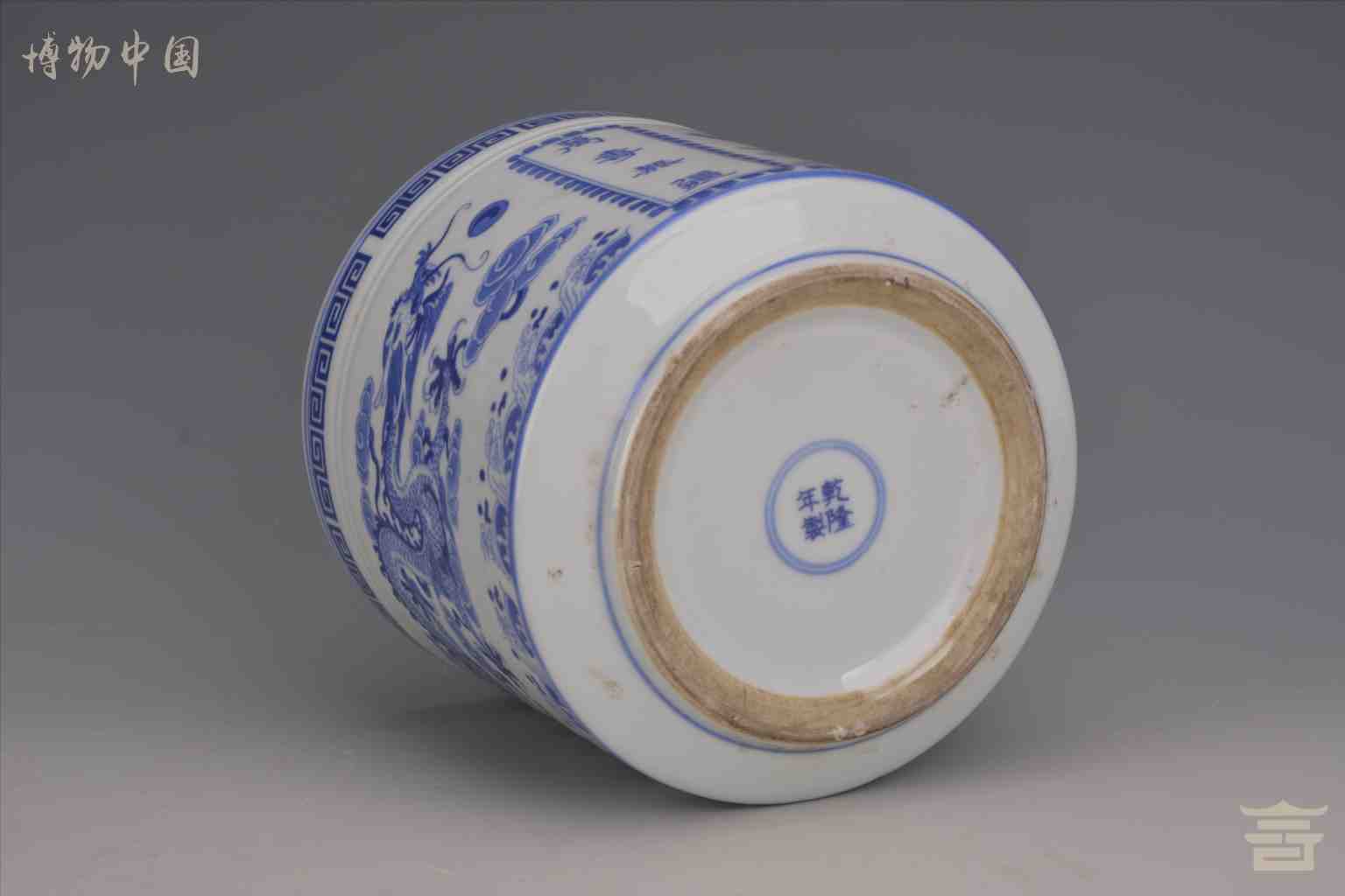 > 民国“乾隆年制”款青花云龙纹瓷笔筒