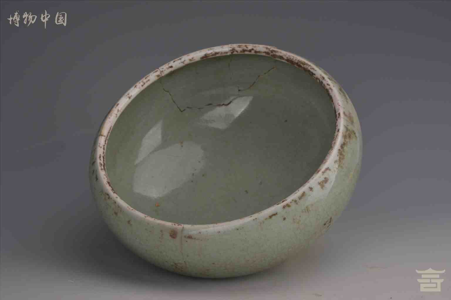 > 清青釉小开片三乳足瓷笔洗