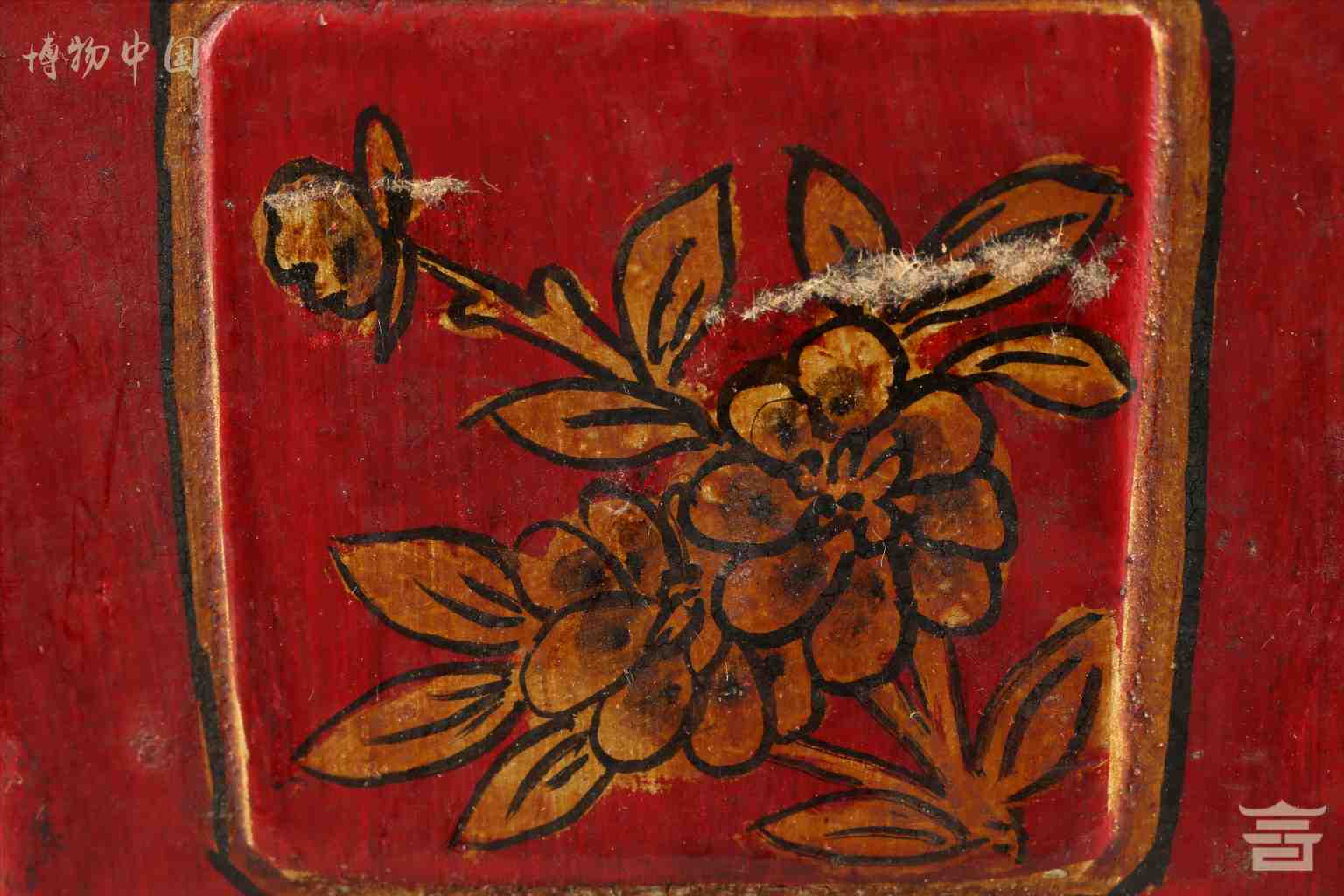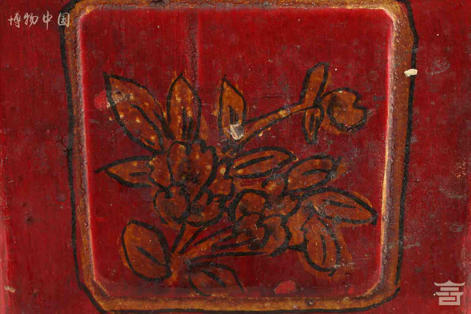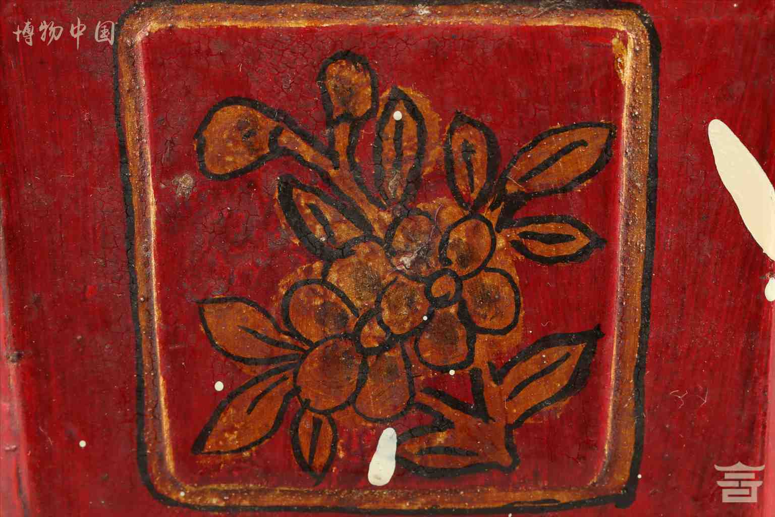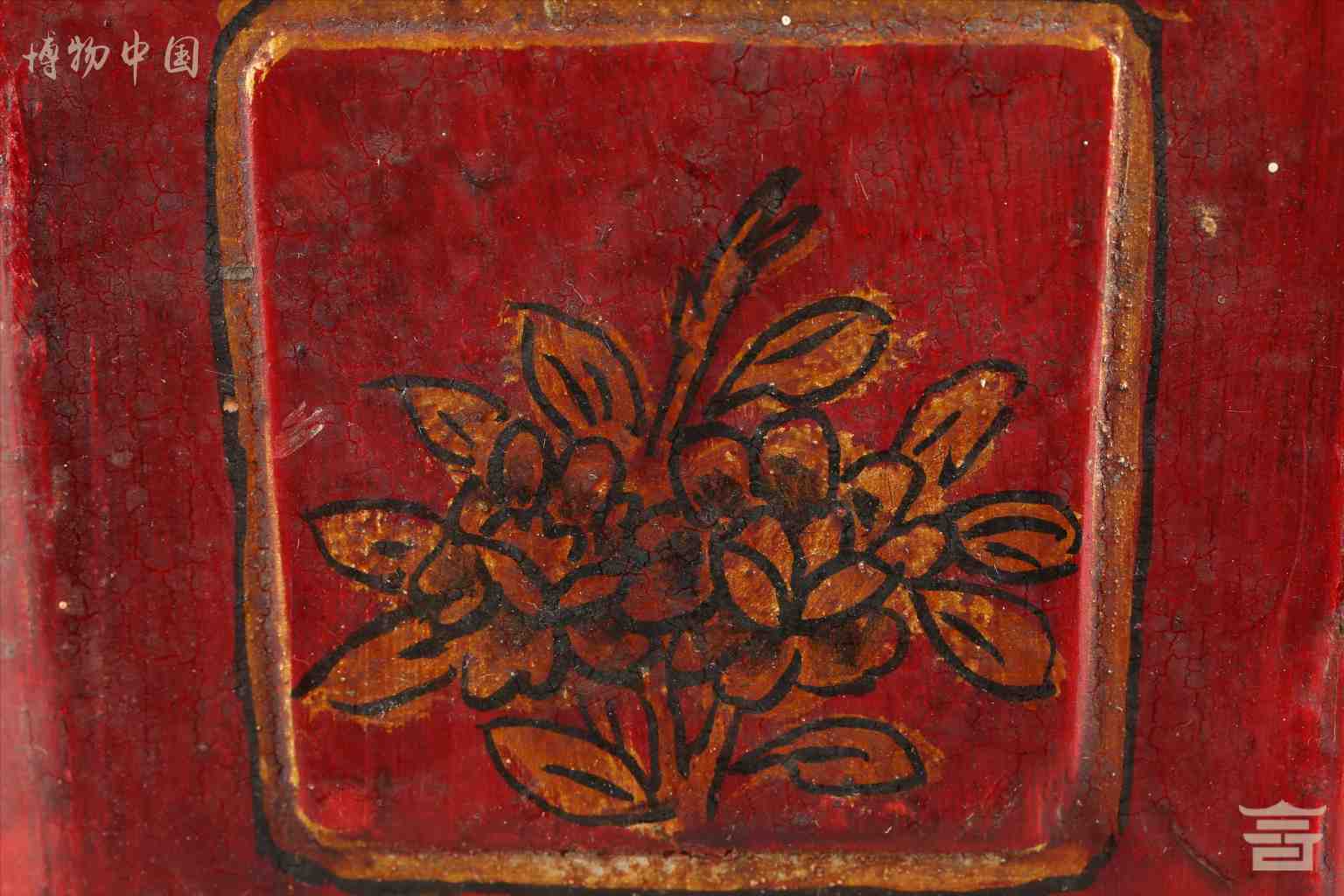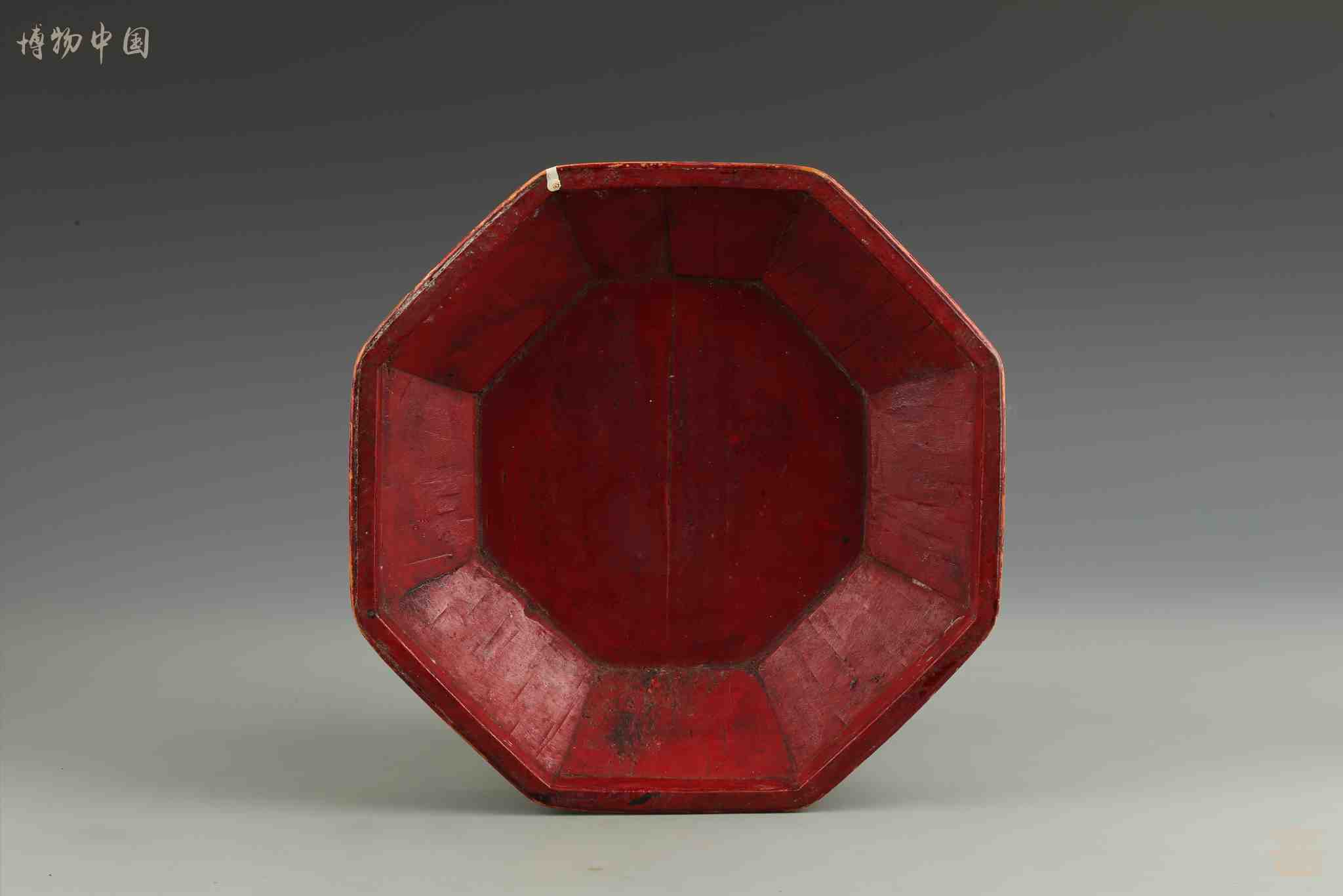 > 民国朱漆彩绘花卉纹八角木提梁盒