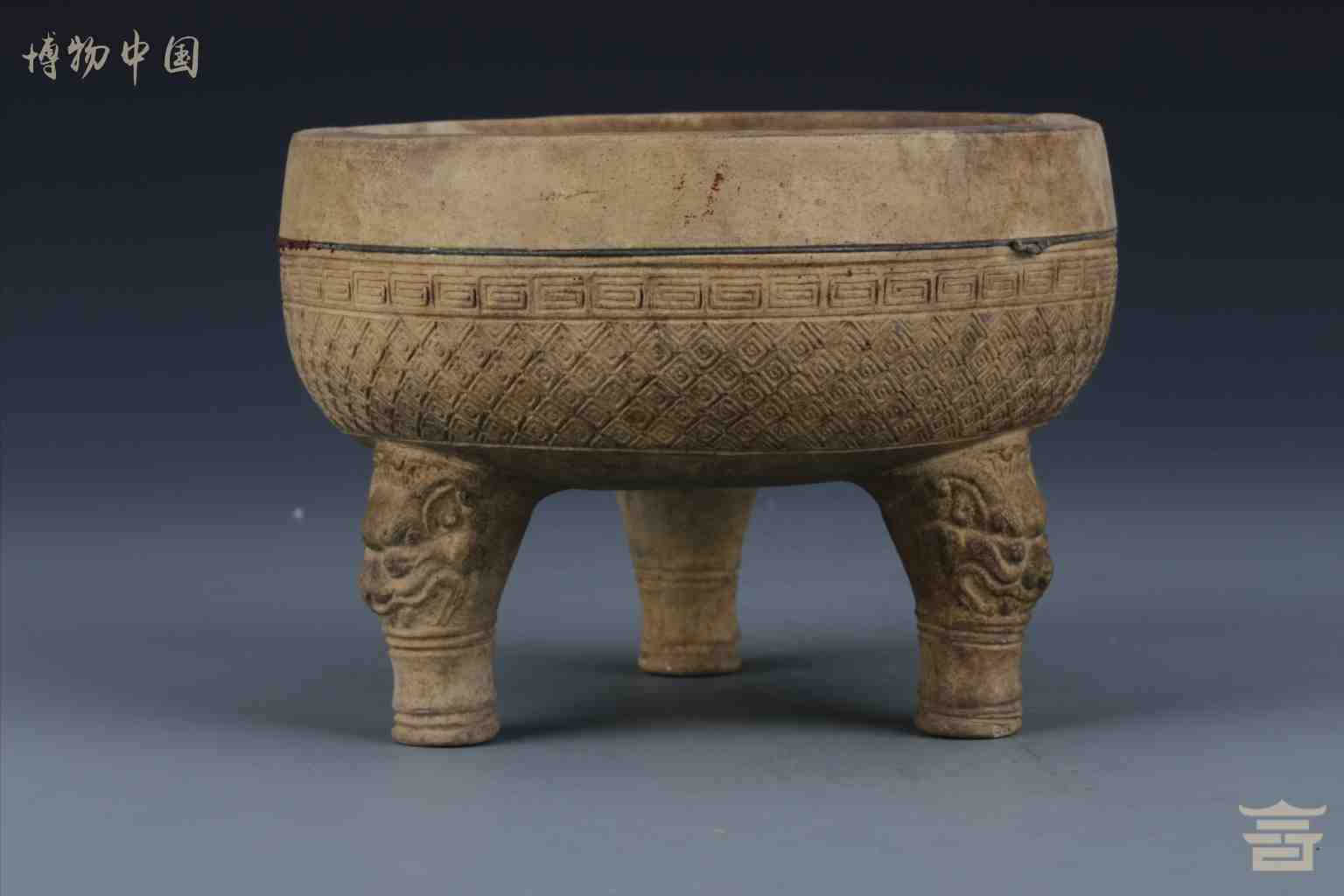 > 清仿“宣德年造”款云雷纹三足陶鼎