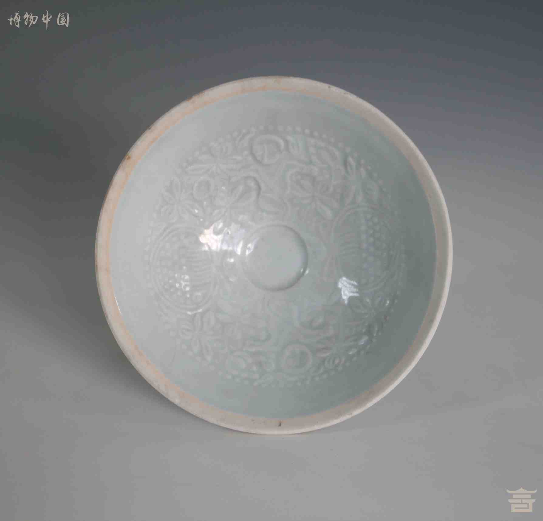 > 南宋青白釉印婴戏纹芒口瓷碗