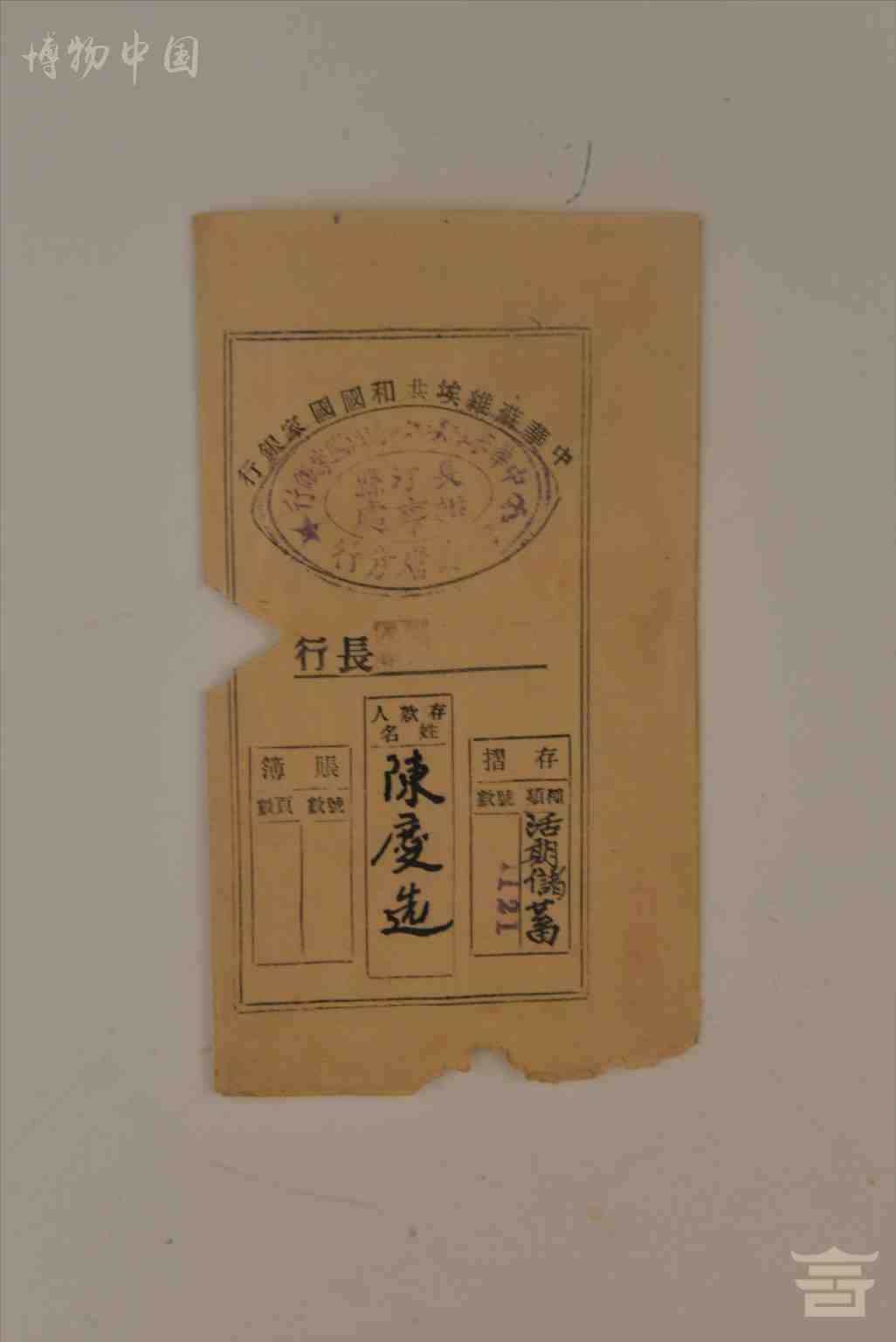 > 1934年8月27日陈庆选中华苏维埃国家银行福建省分行长汀办事处的存折