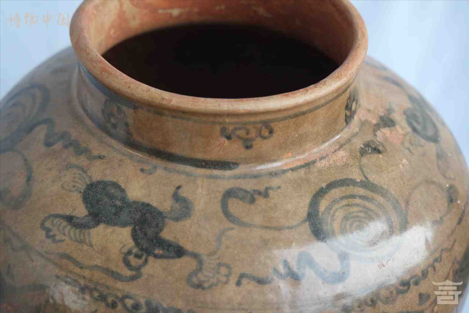 > 明青花火葬陶罐
