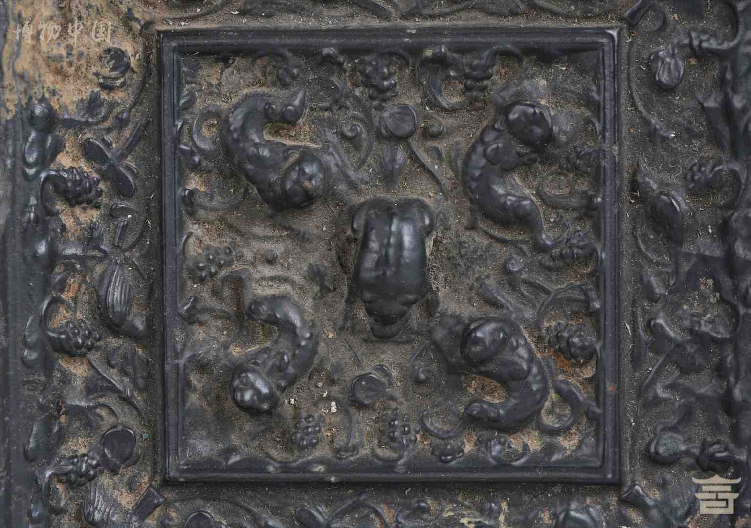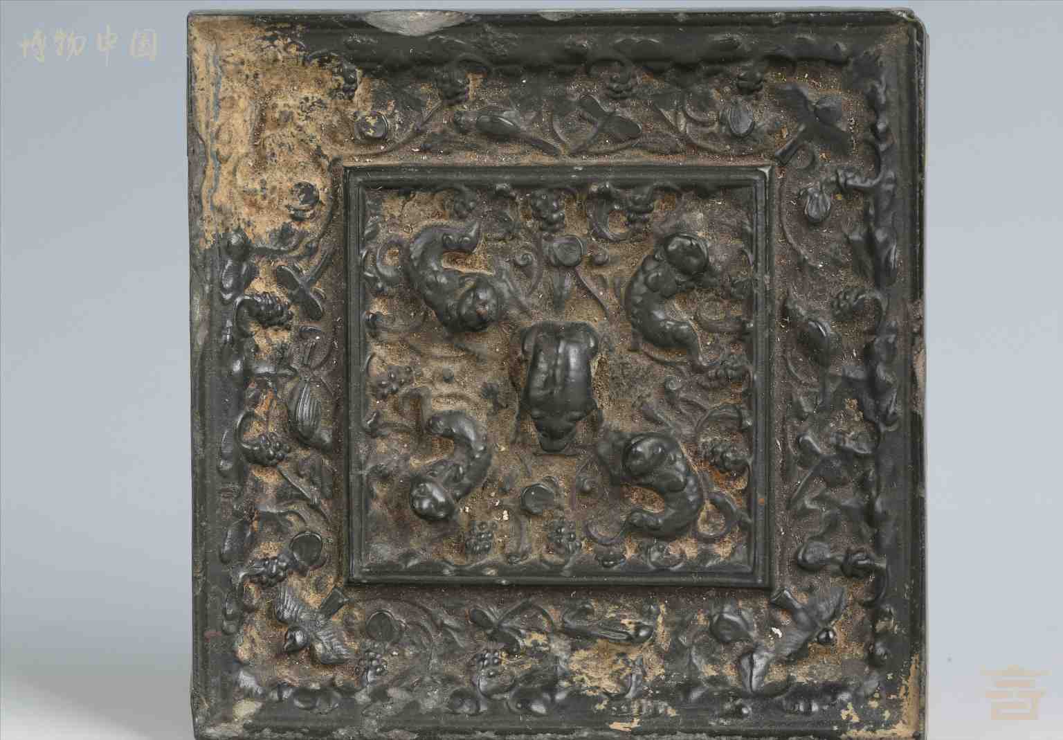 > 唐海兽葡萄纹铜方镜