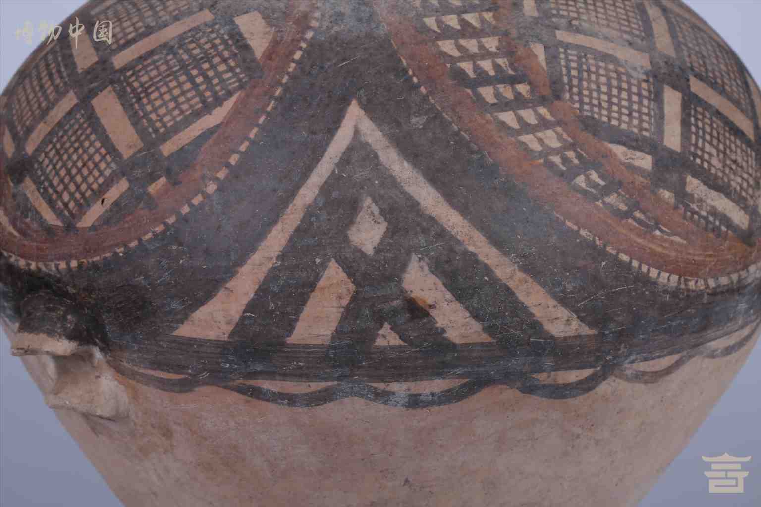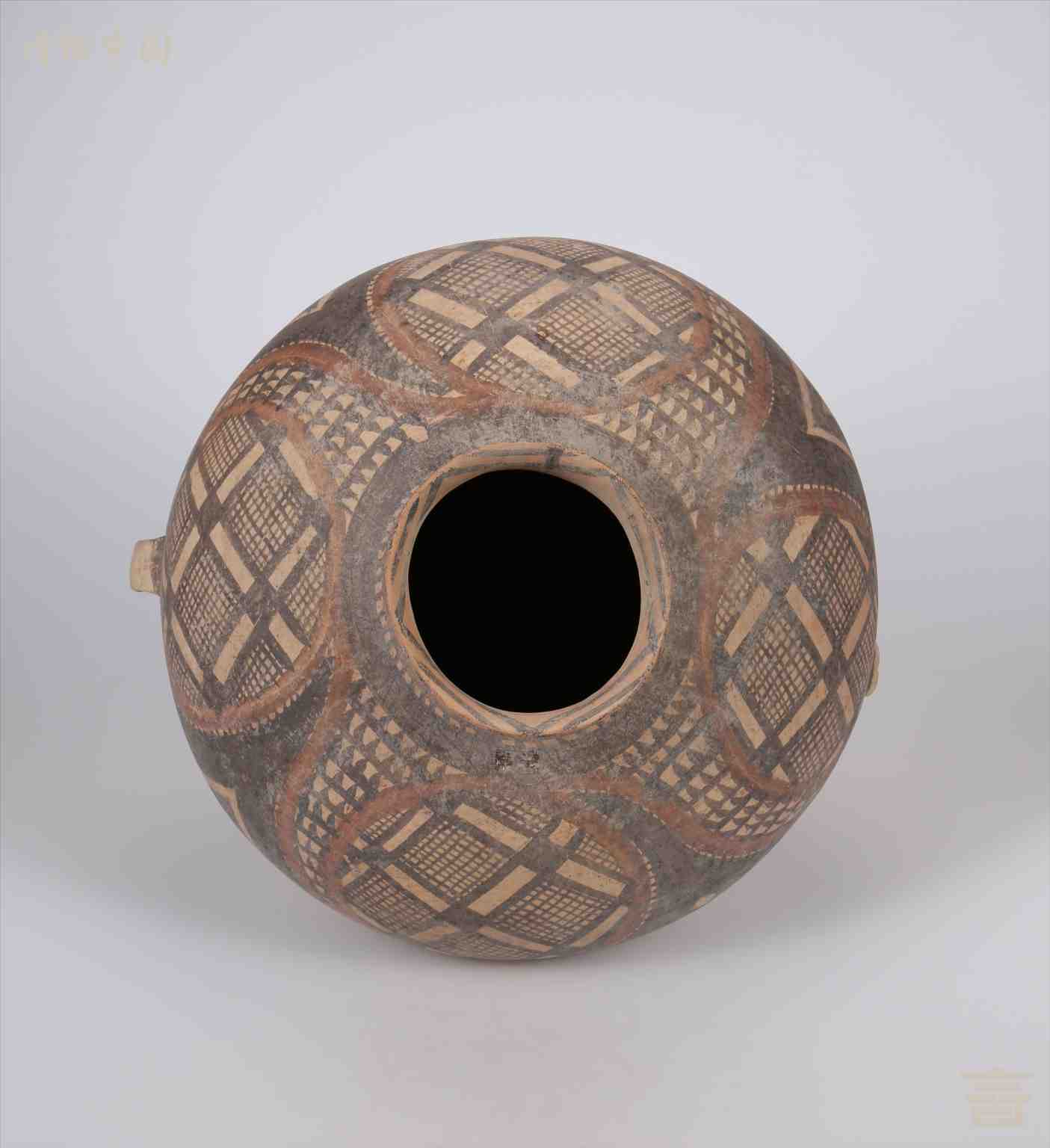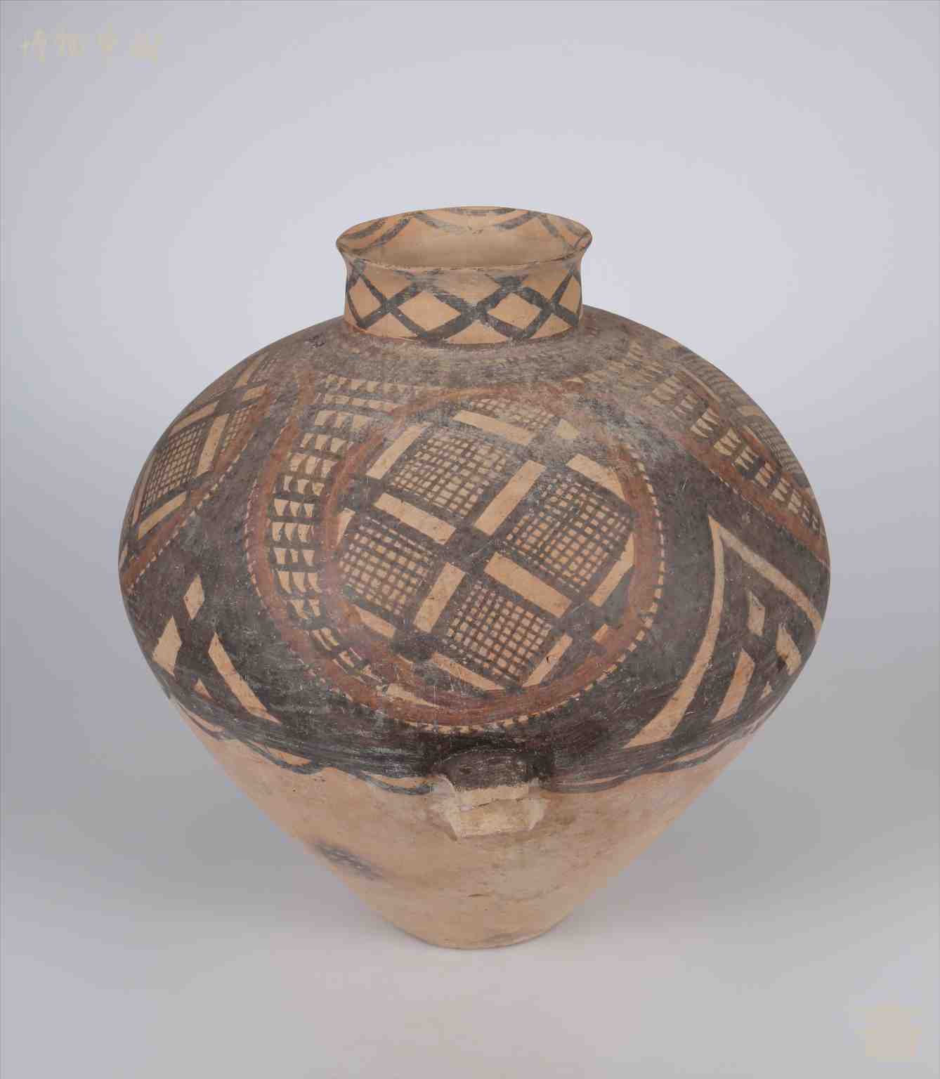 新石器时代马家窑文化四大圆圈内方格双耳彩陶壶