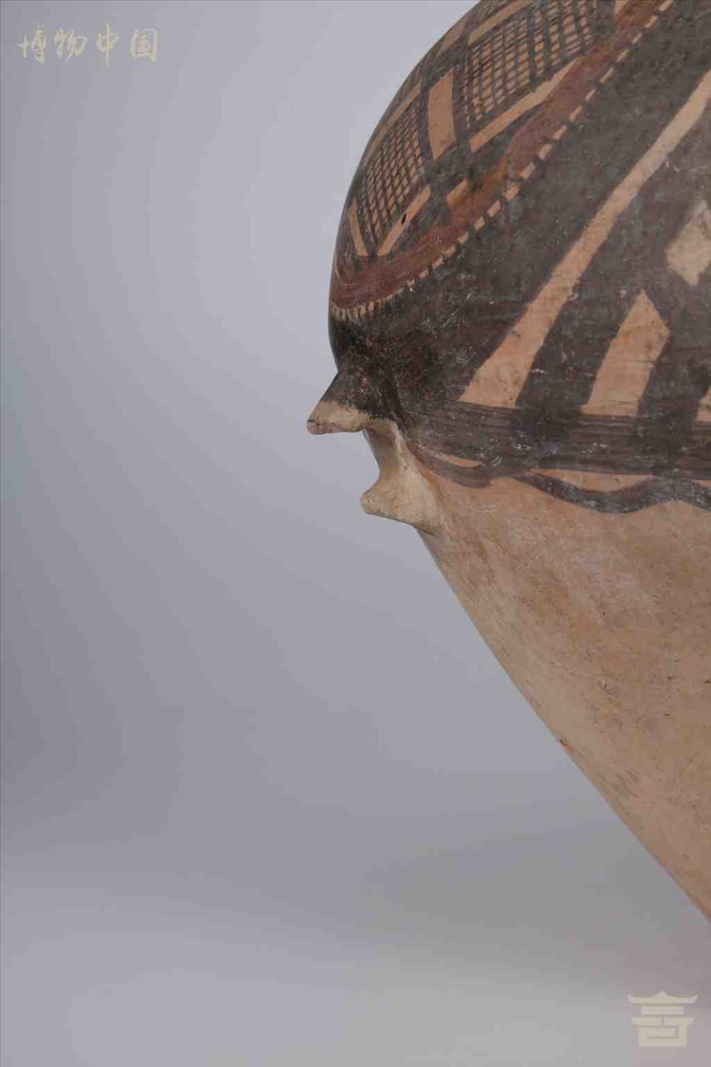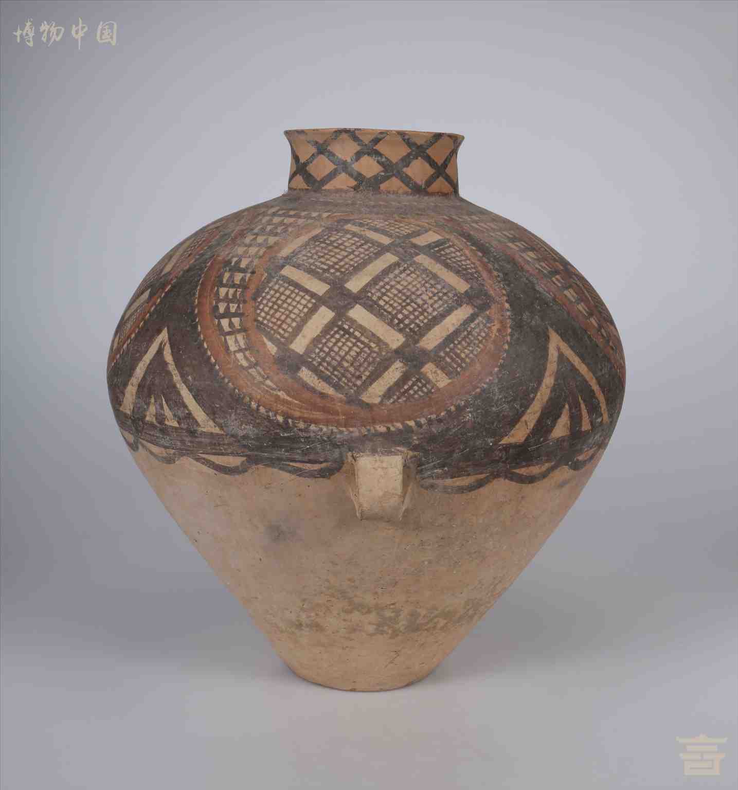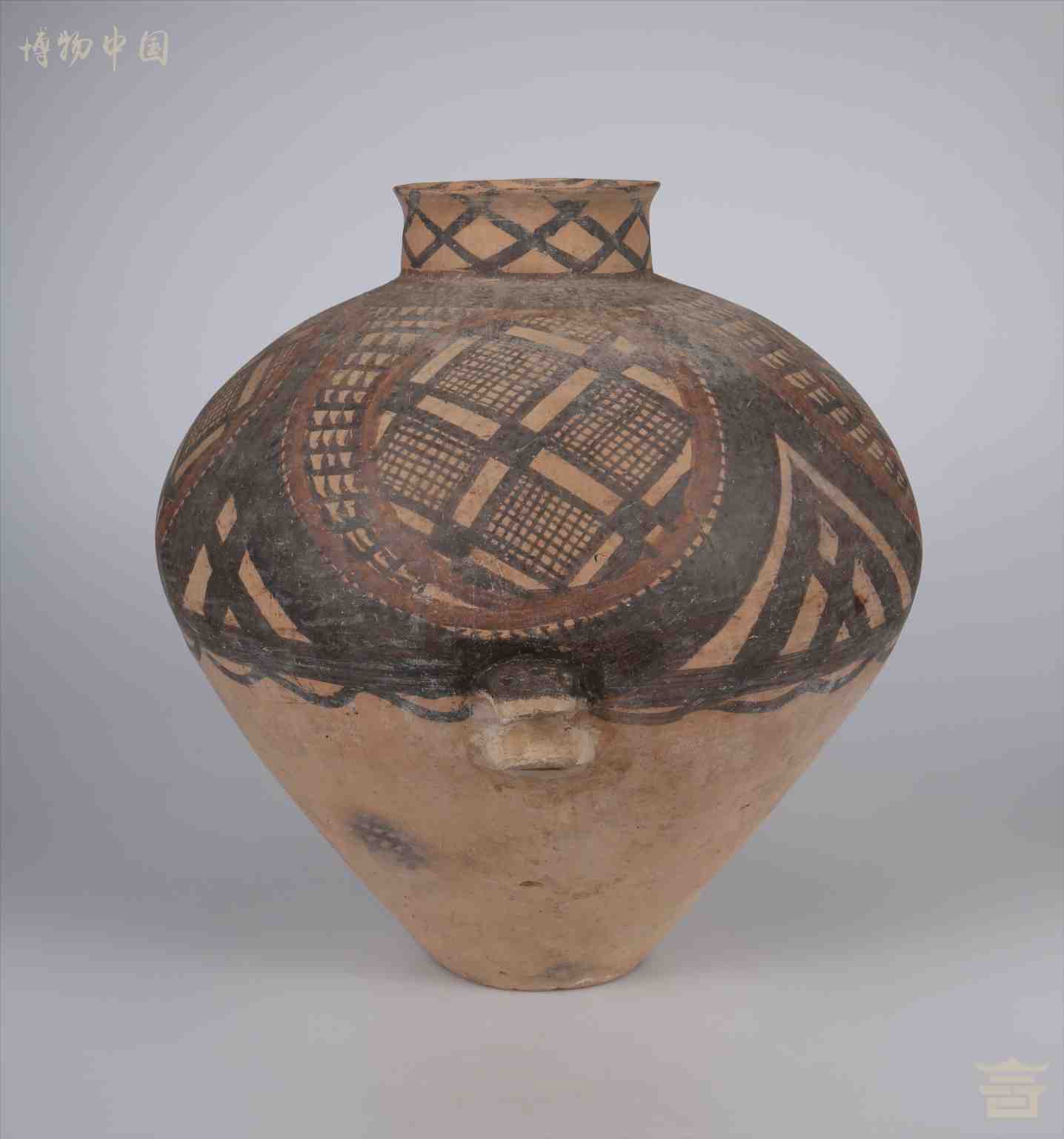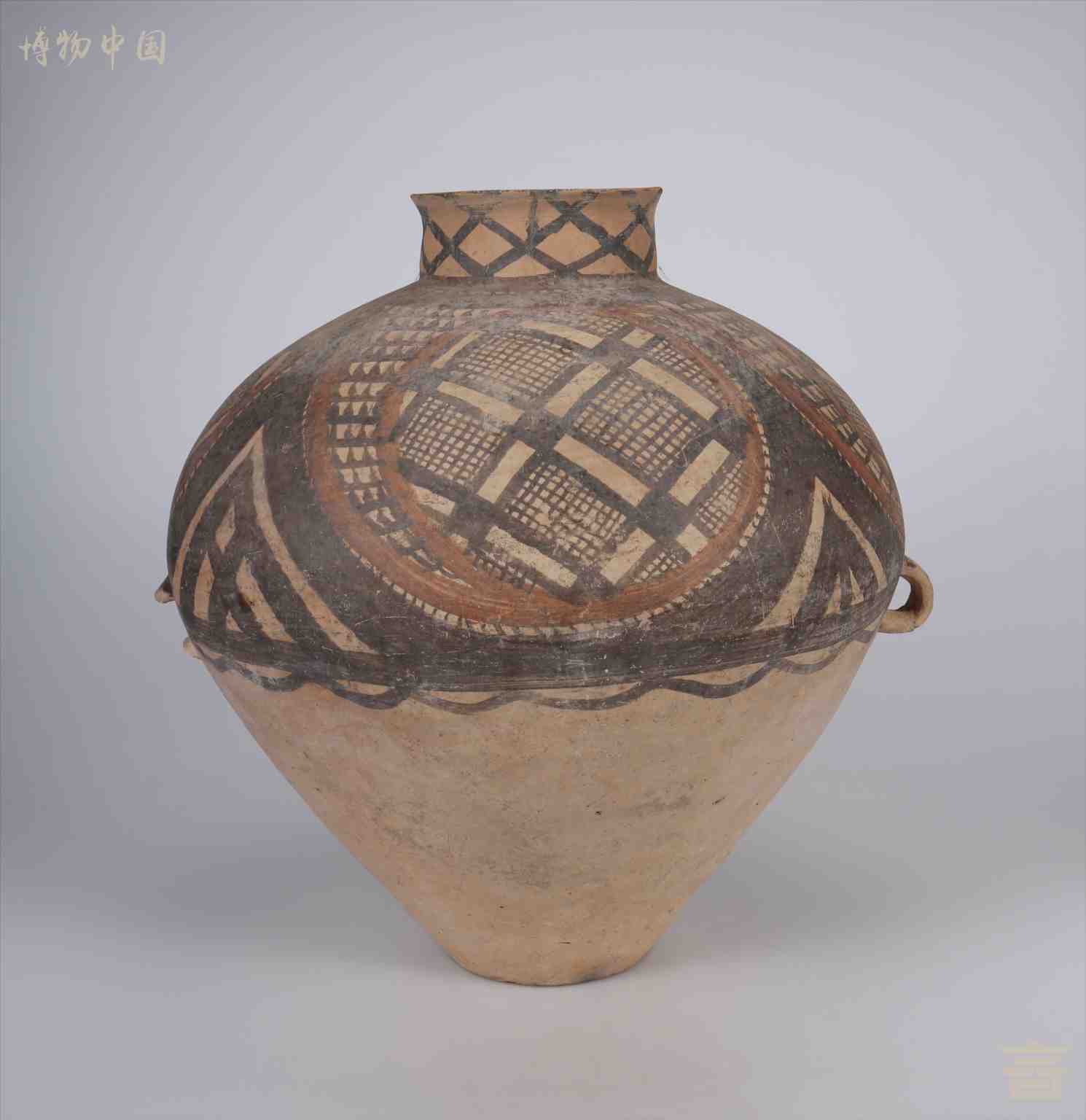 新石器时代马家窑文化四大圆圈内方格双耳彩陶壶