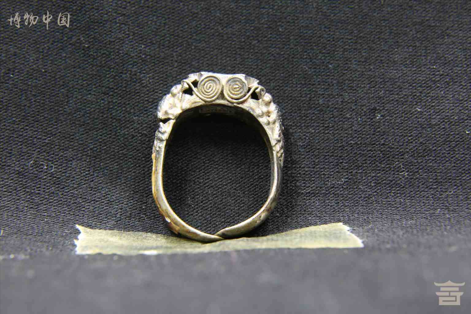 > 民国雕刻“吉安”字形银戒指