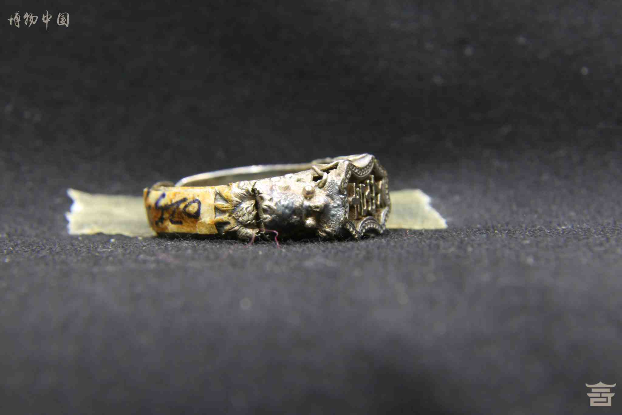 民国雕刻“吉安”字形银戒指