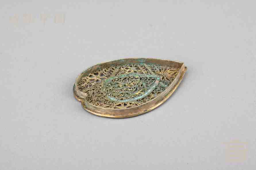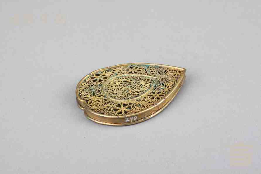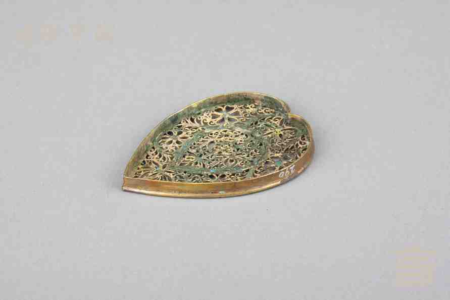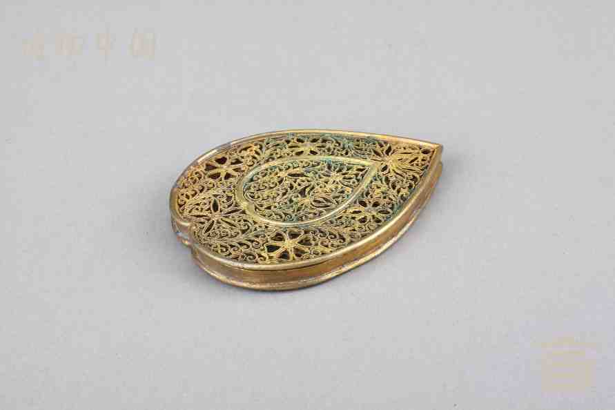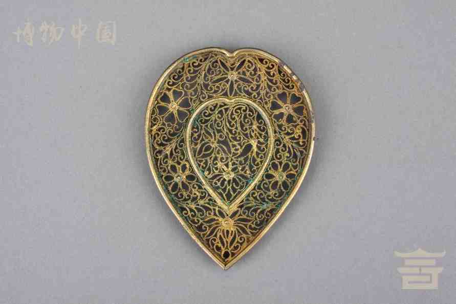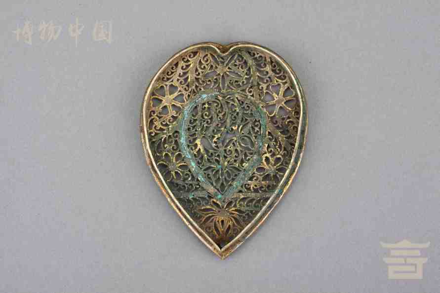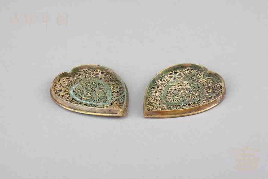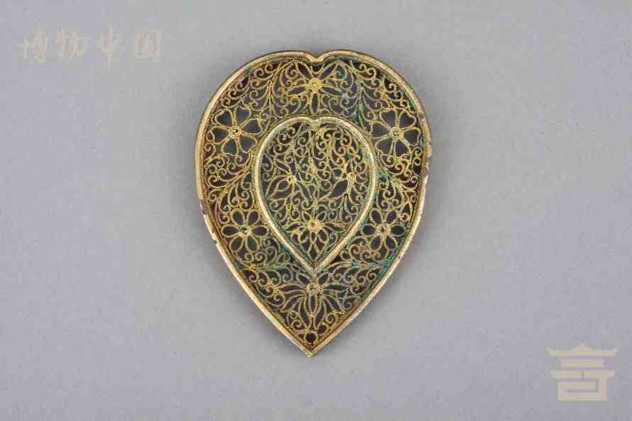> 南宋银鎏金镂空心形香熏