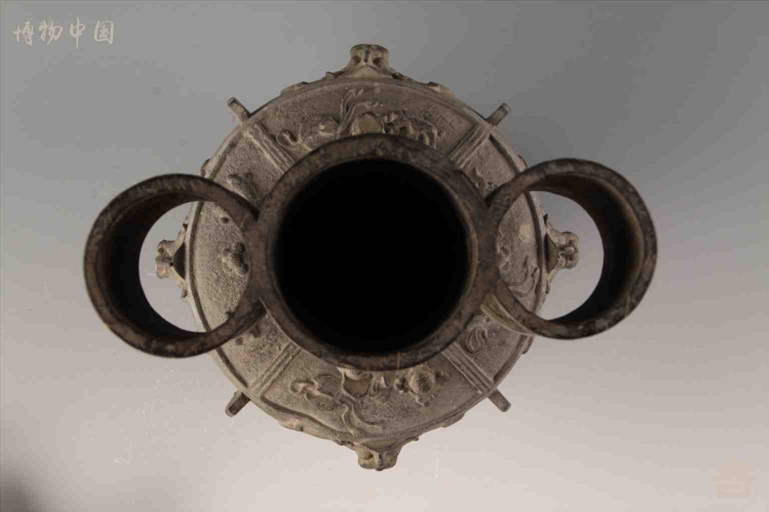 > 清螭龙纹长颈铜贯耳壶