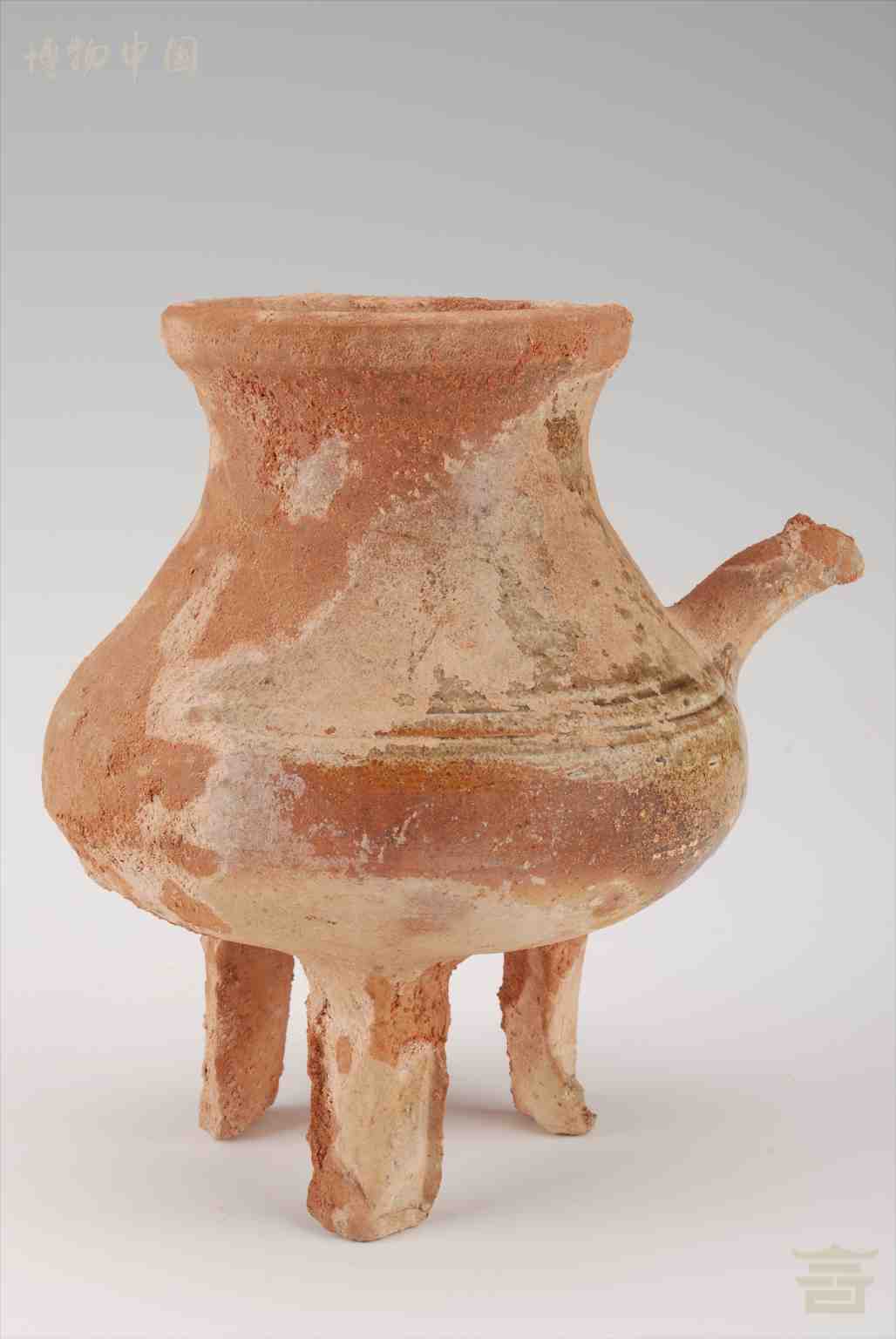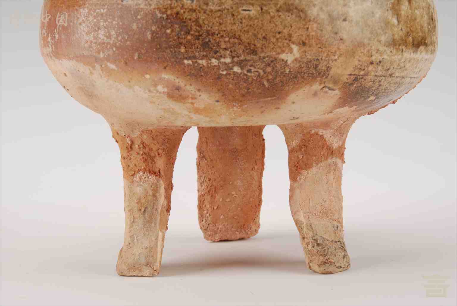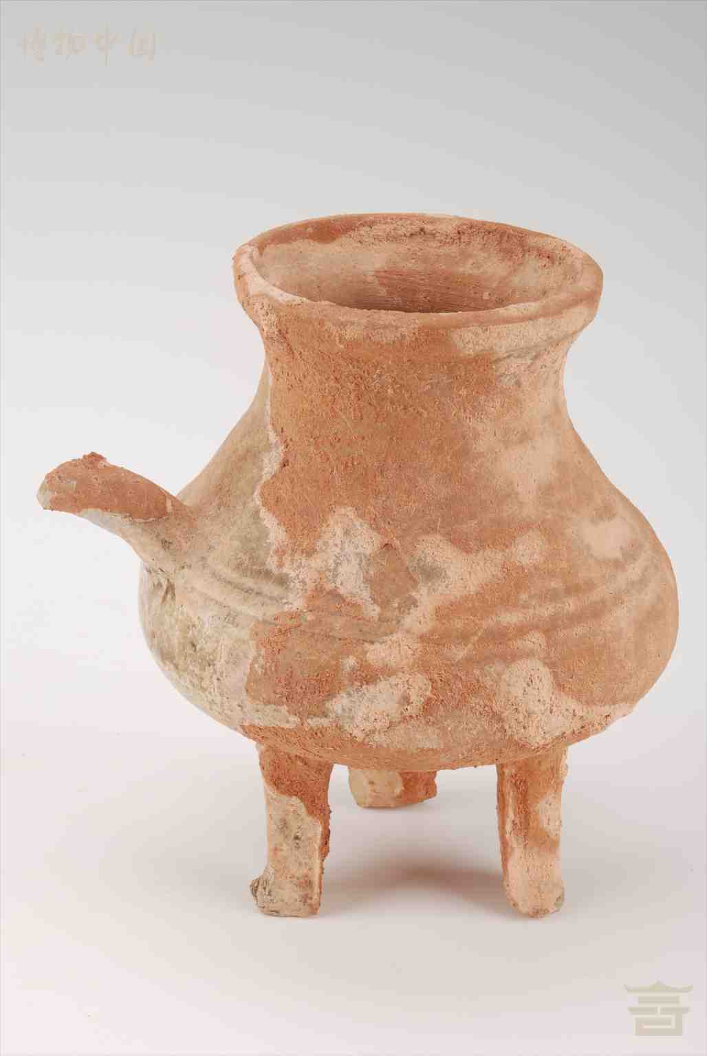 > 汉青釉三足陶把壶