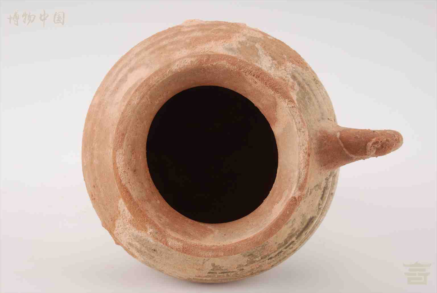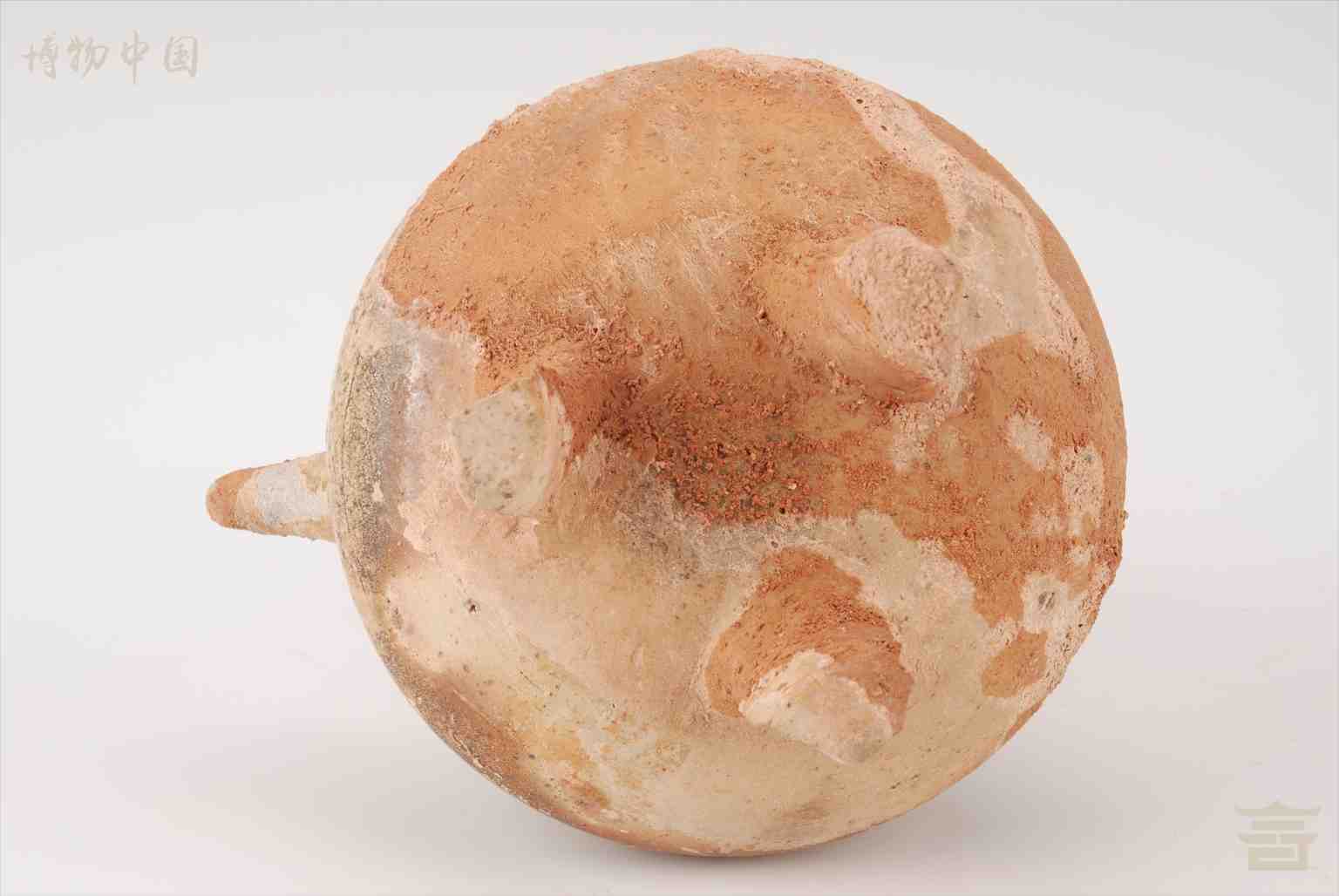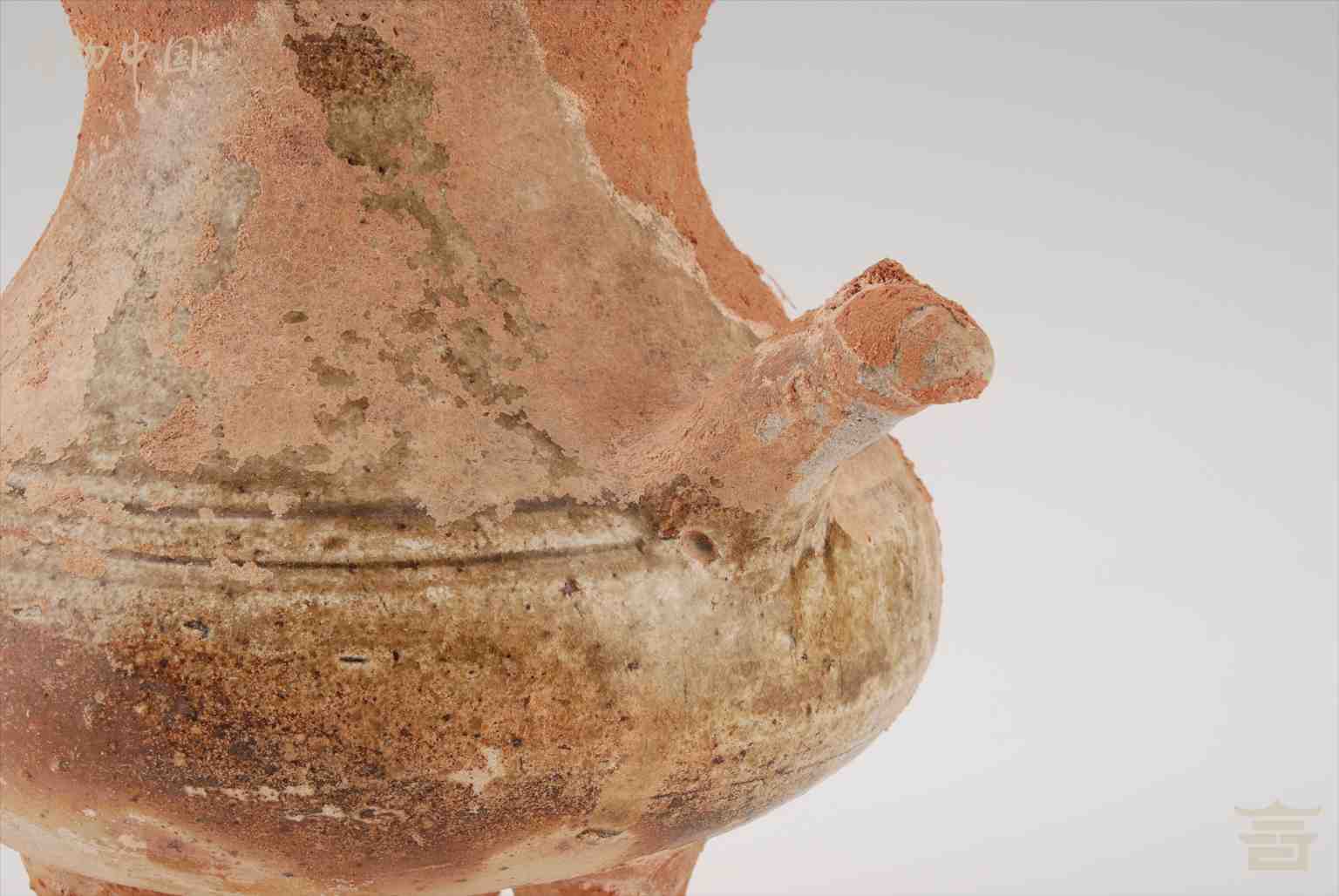 > 汉青釉三足陶把壶