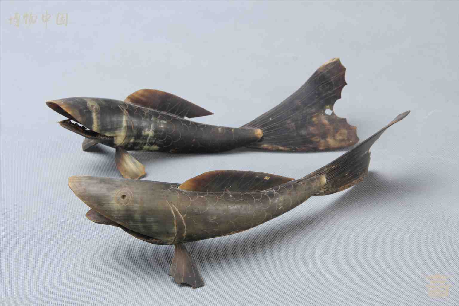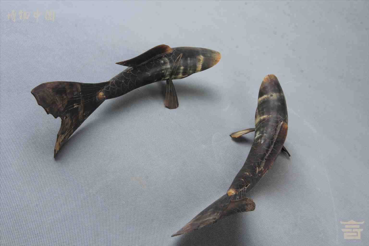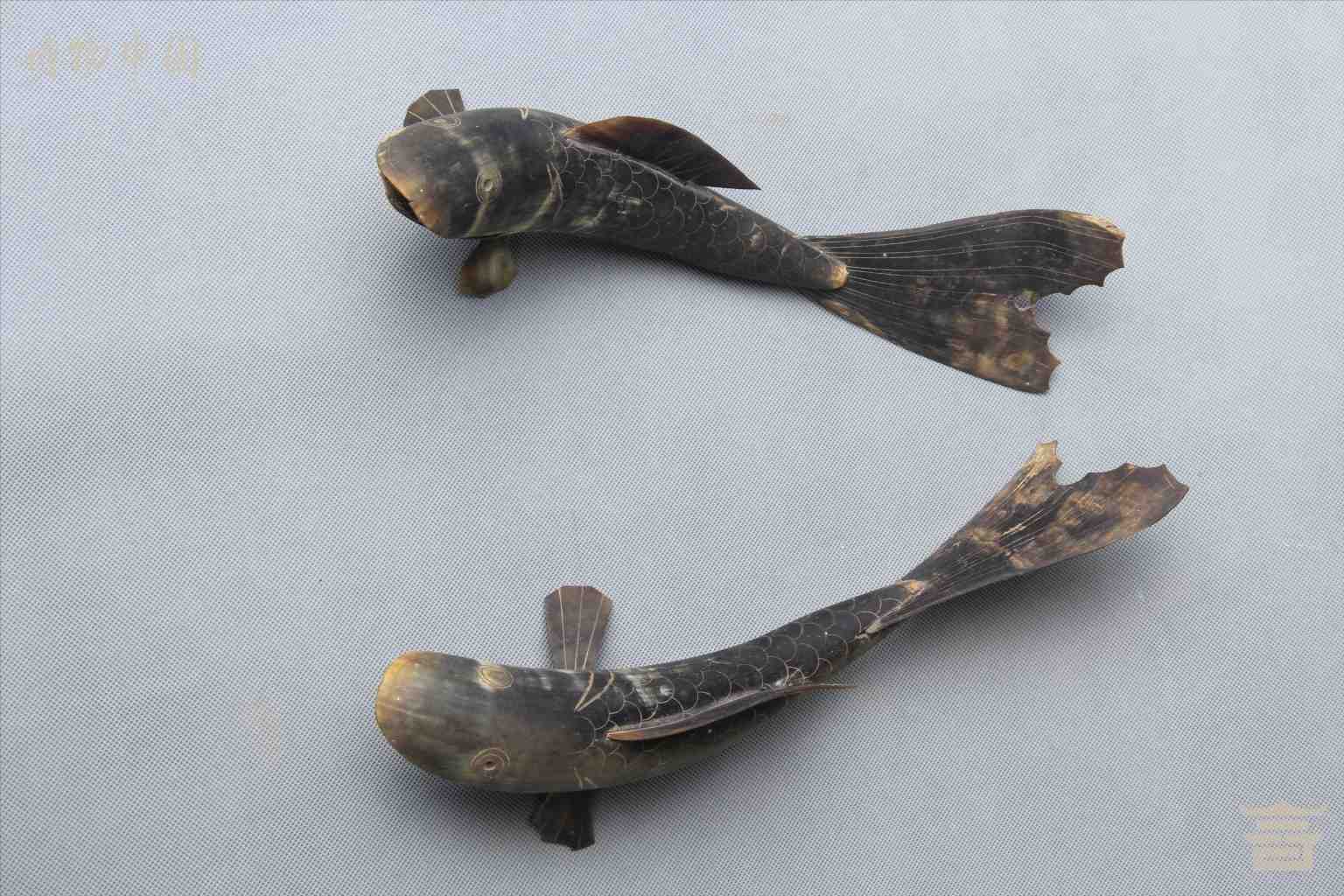 清双鱼形牛角骨摆件