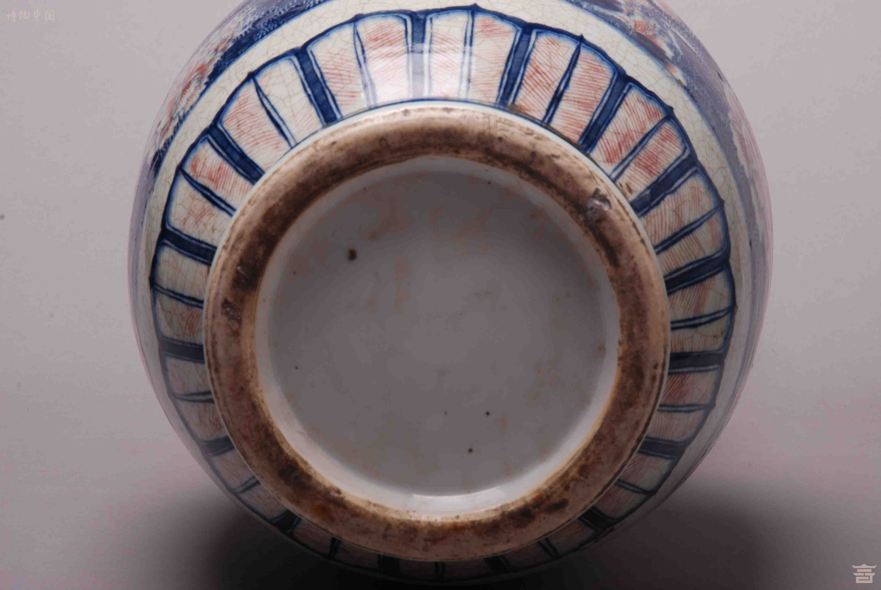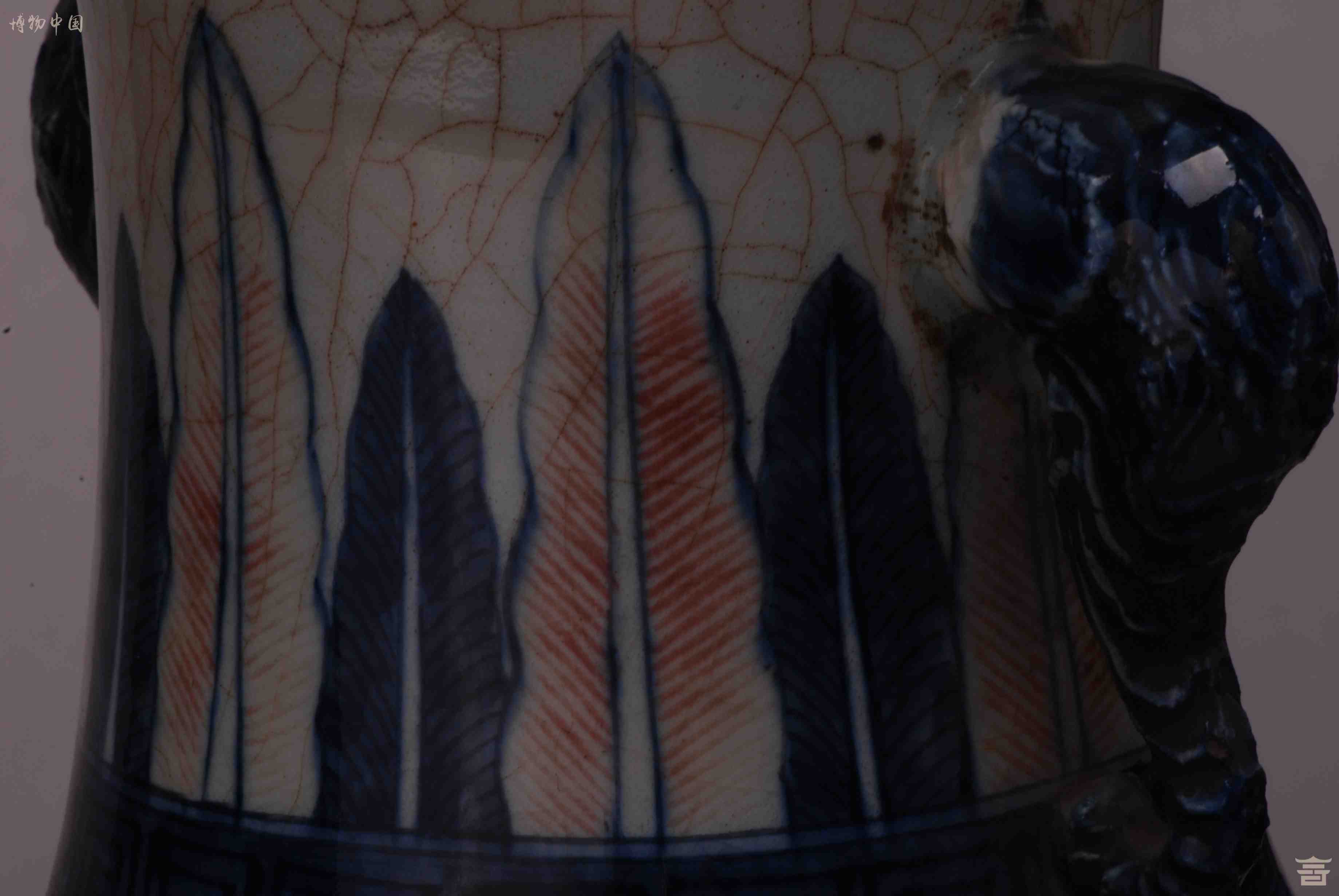 > 清青花牡丹纹象鼻耳碎瓷花瓶