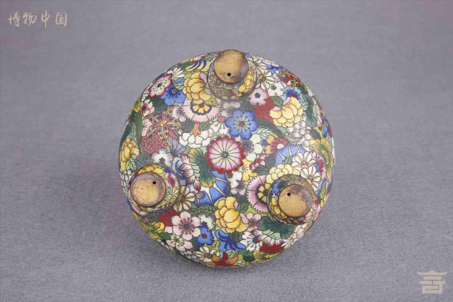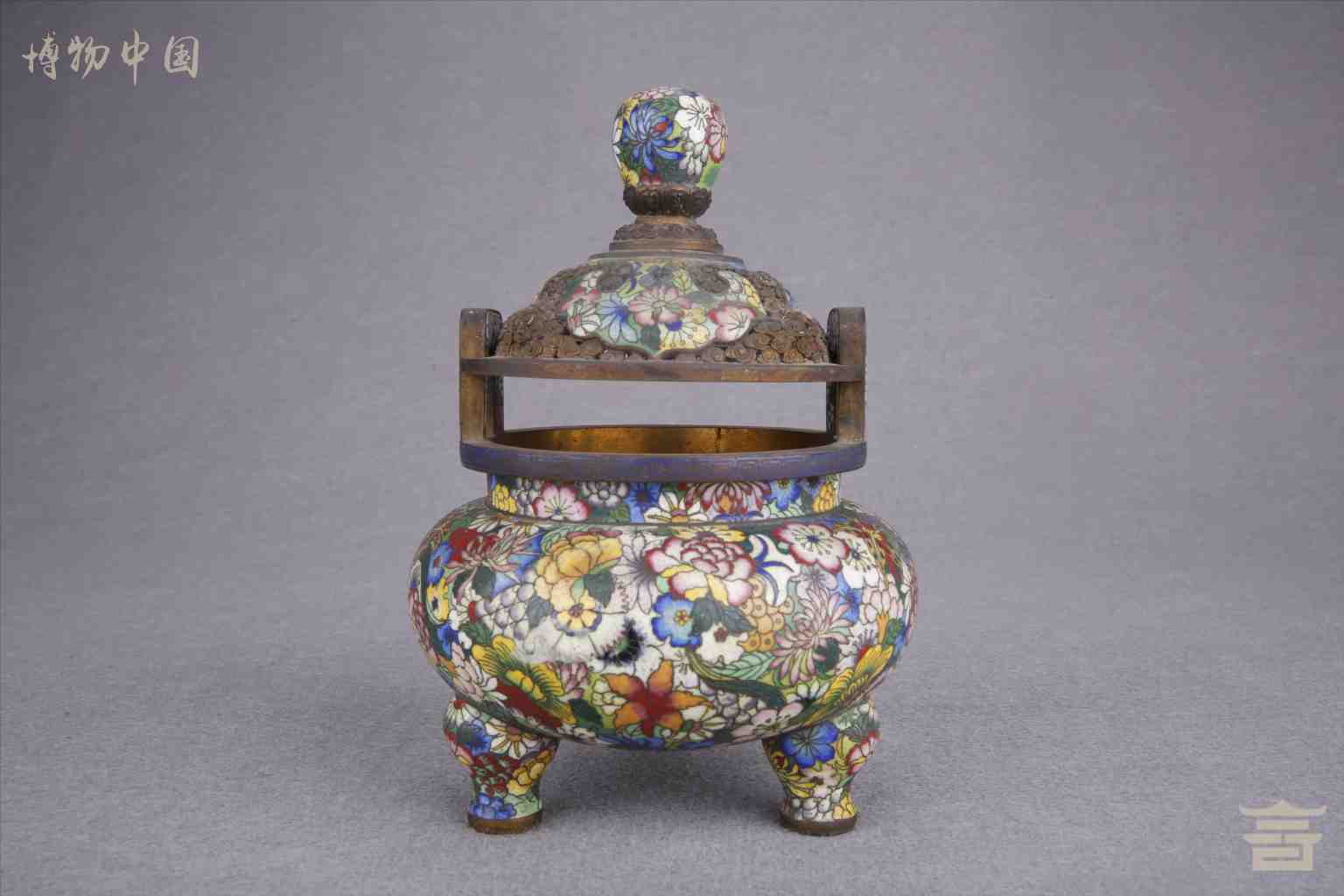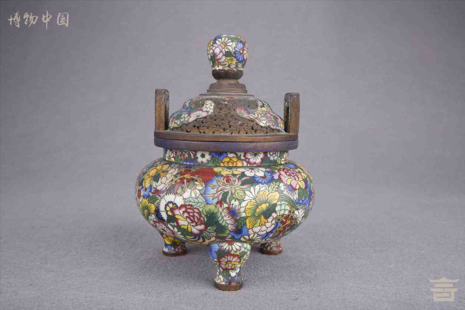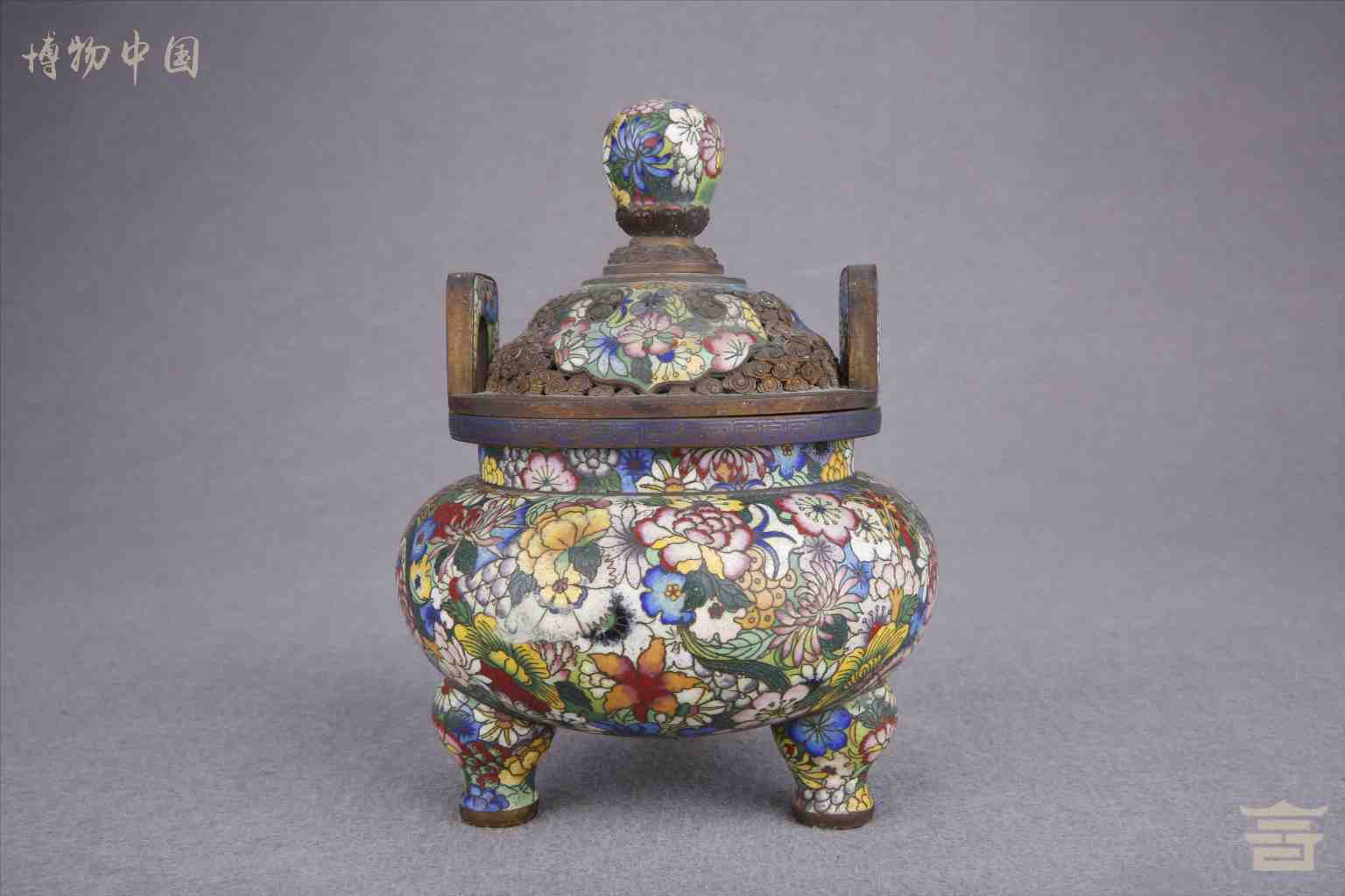 > 民国铜胎掐丝珐琅花卉纹双耳熏炉