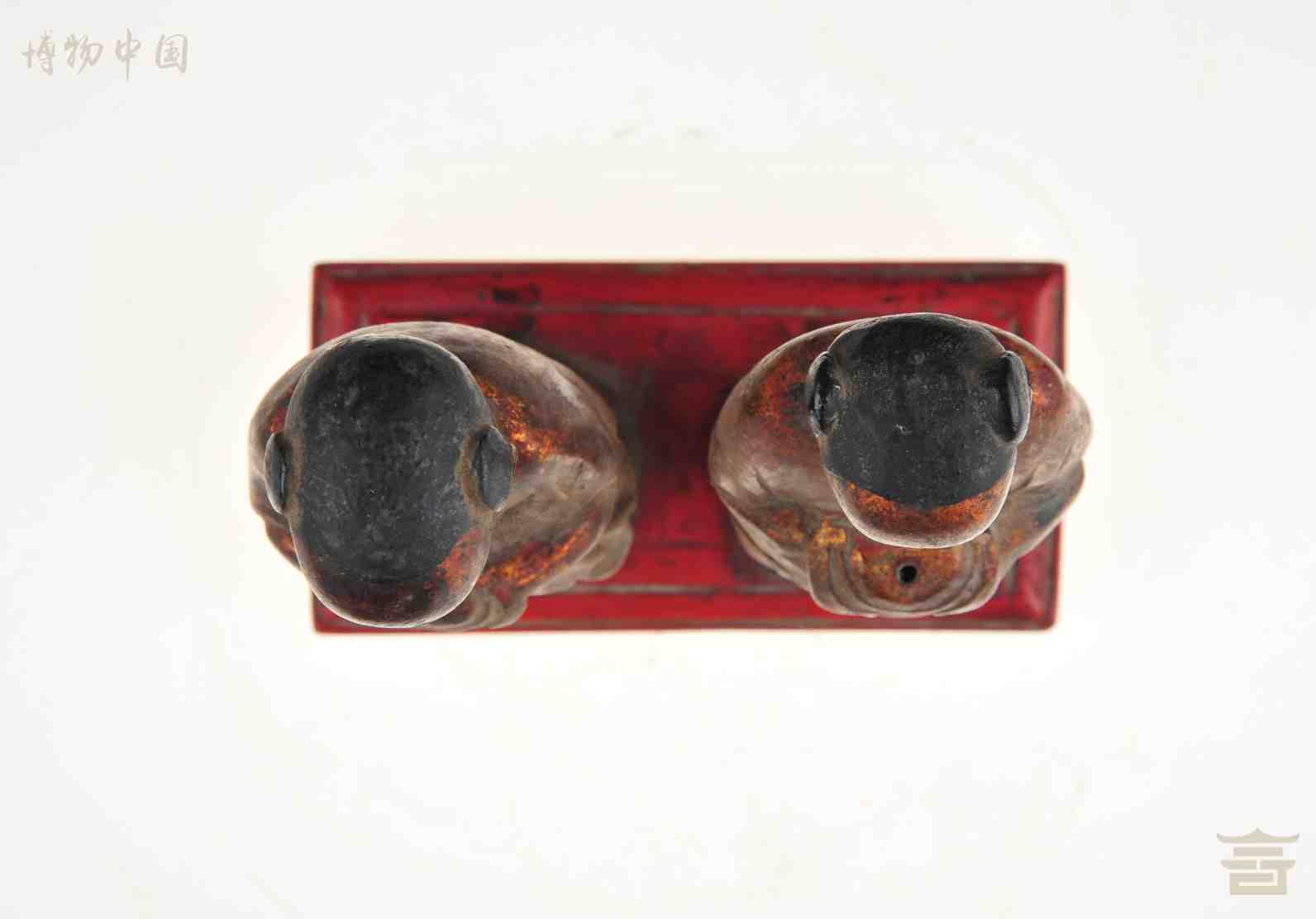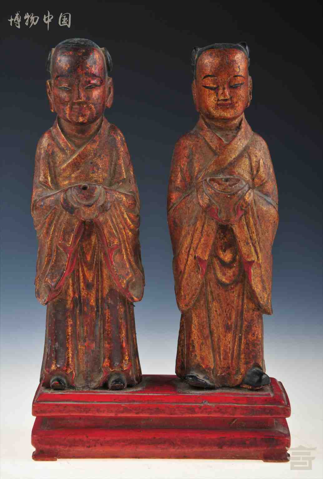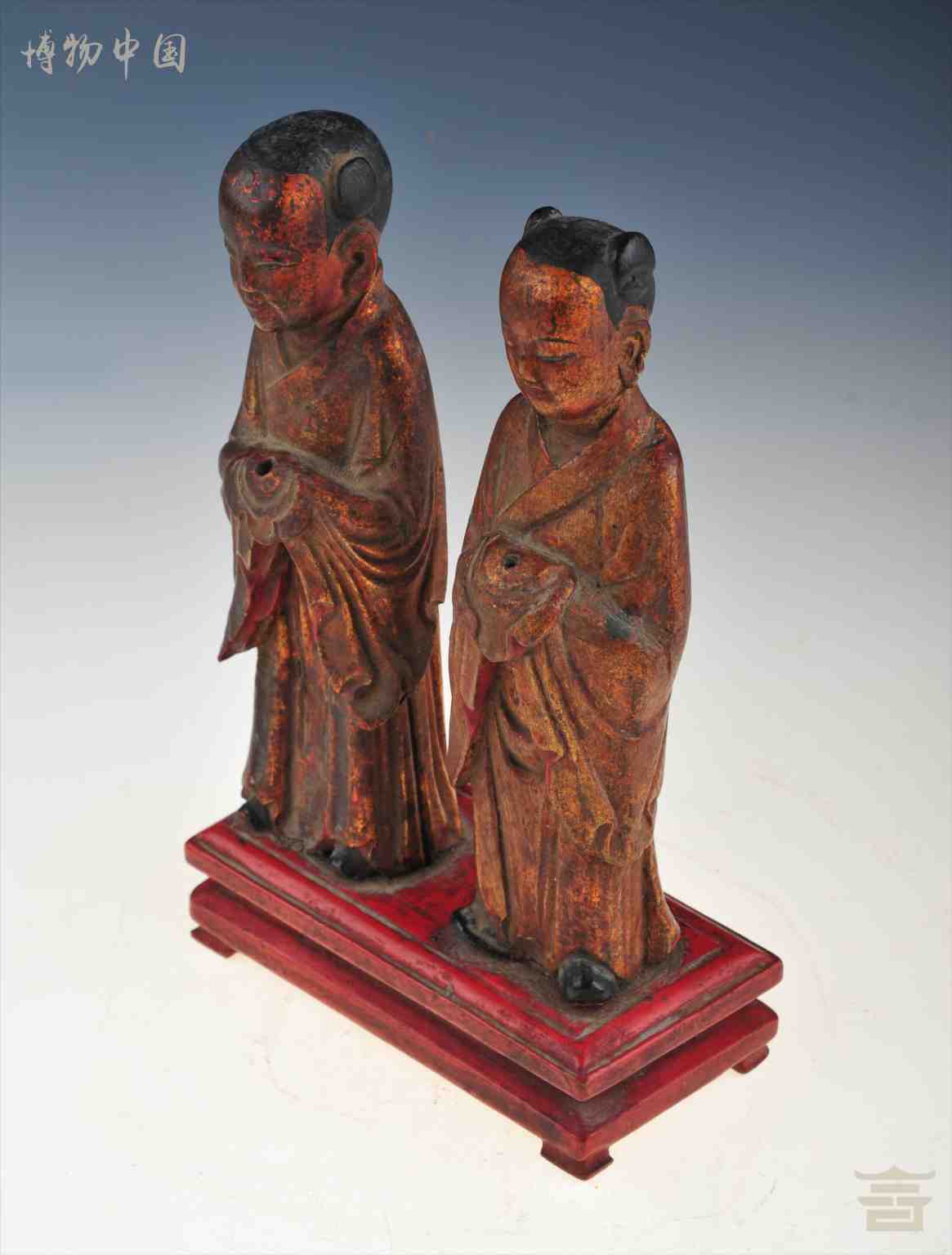 > 清朱金童男童女木立像