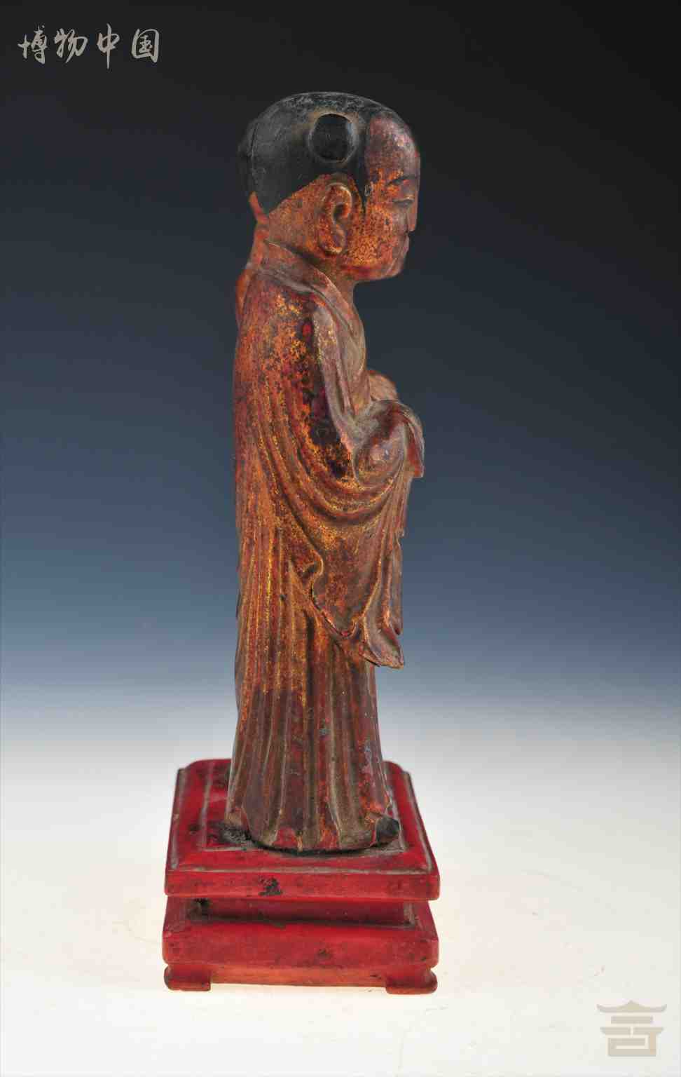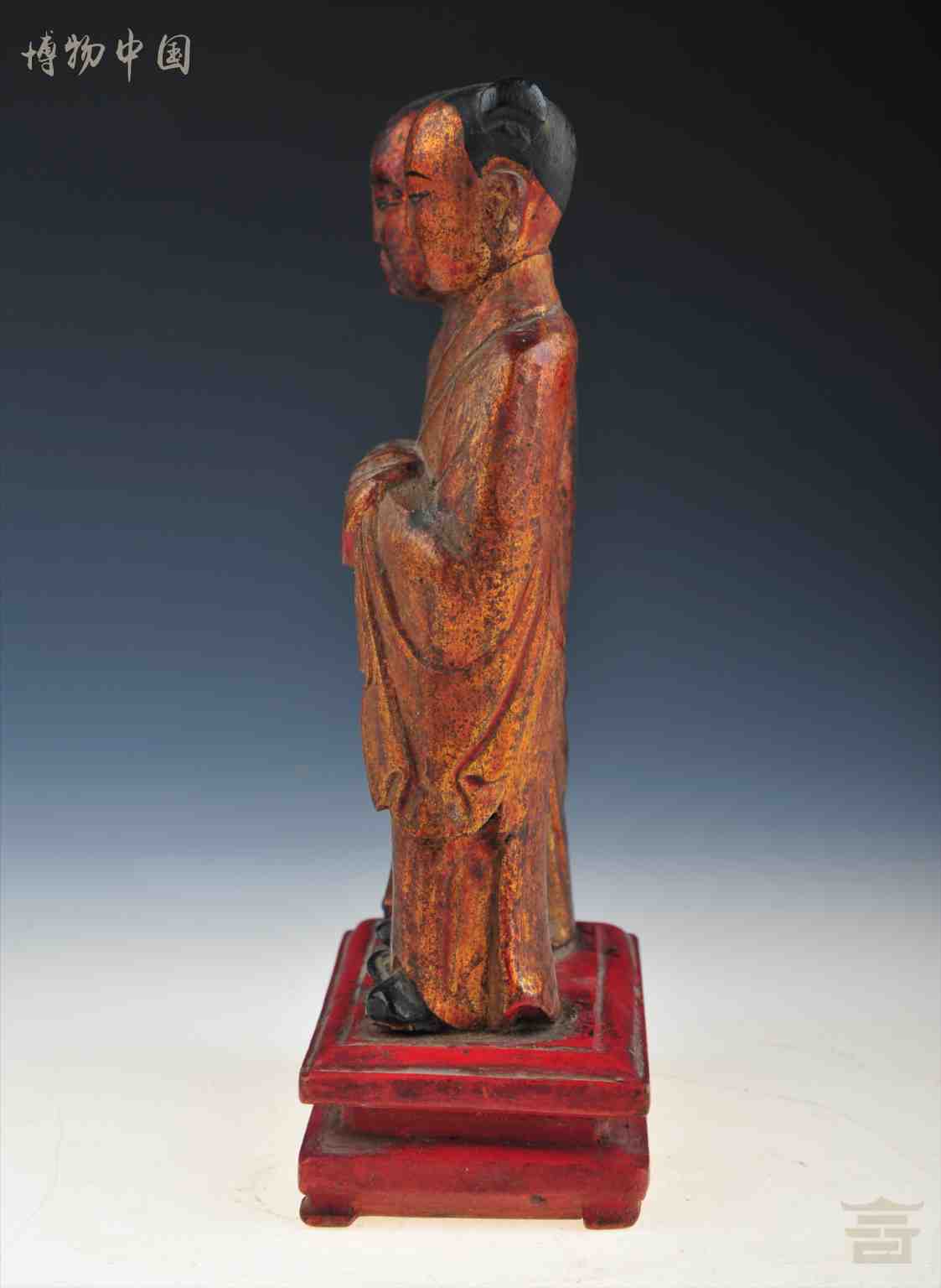 清朱金童男童女木立像