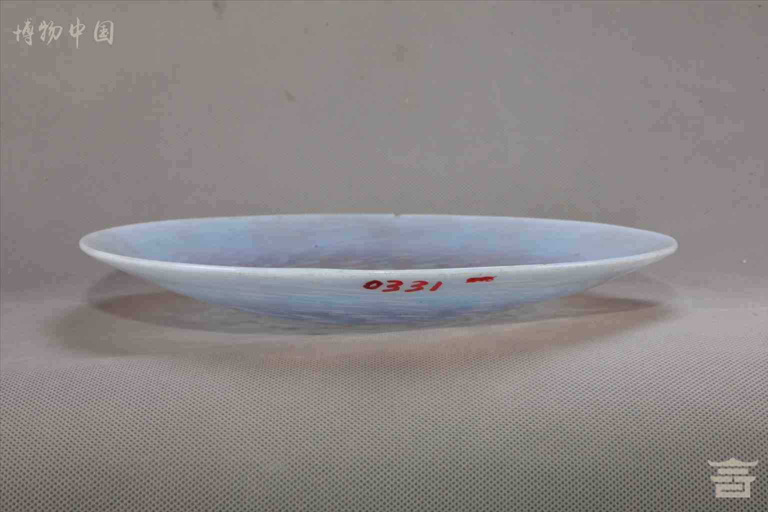 19世纪湖水蓝底白旋点花料卧足玻璃盘