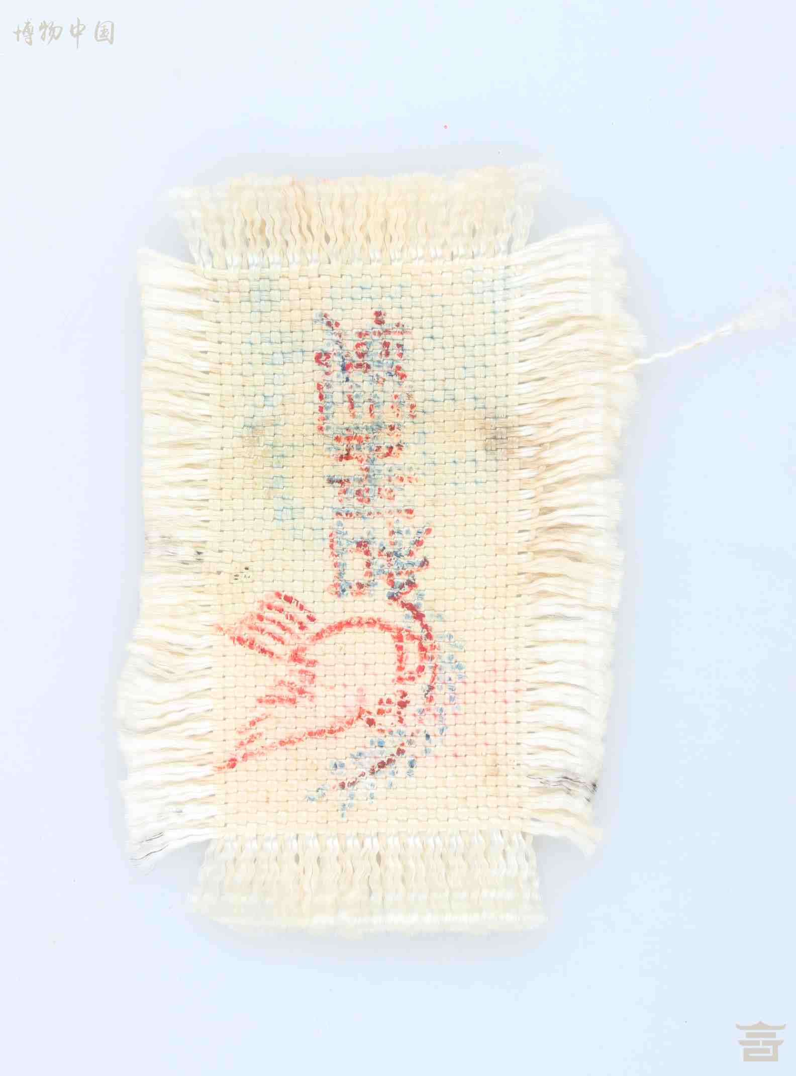 抗美援朝时期陈发俤保存的手绘和平鸽图案的防弹衣切片