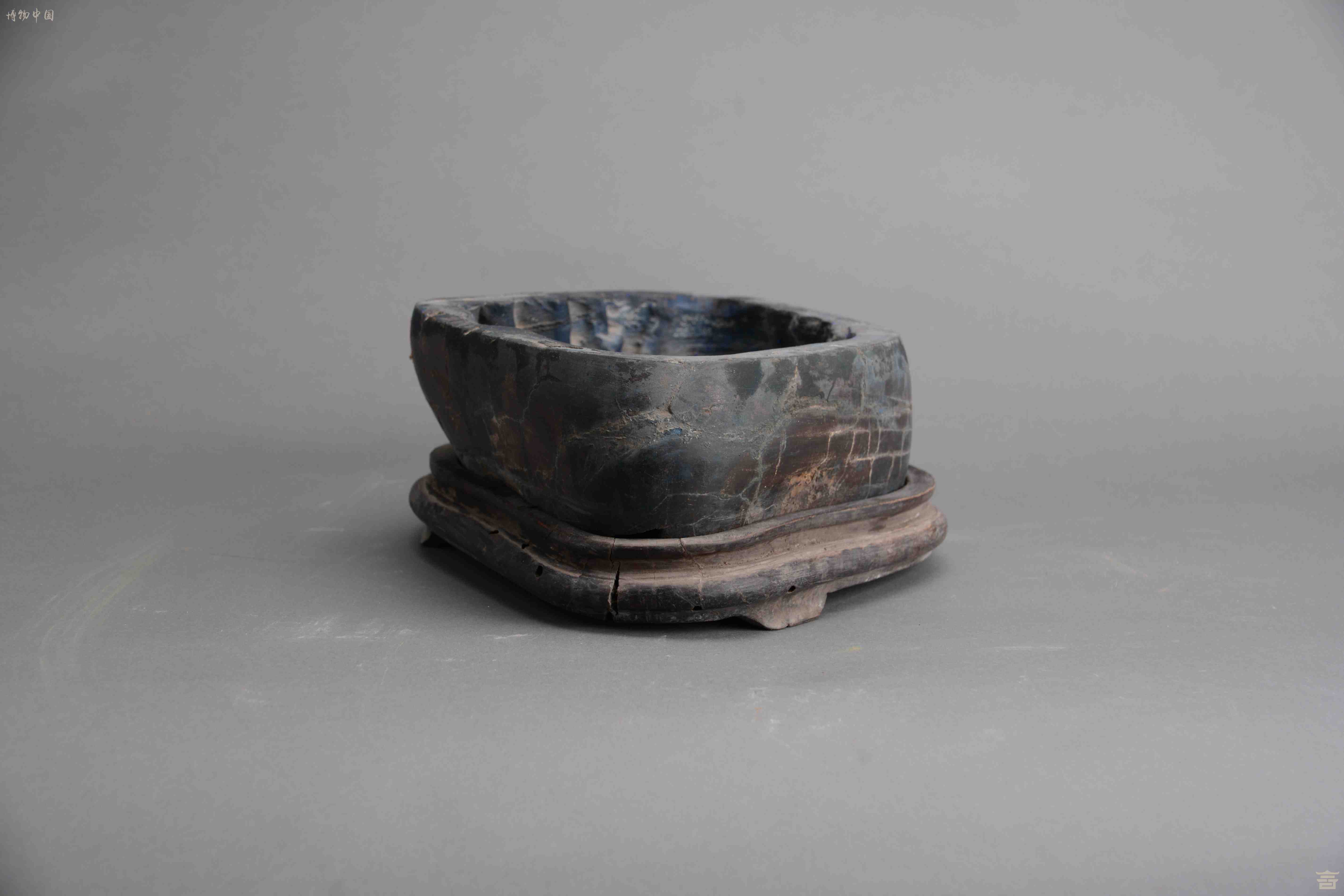 民国带木座石笔洗