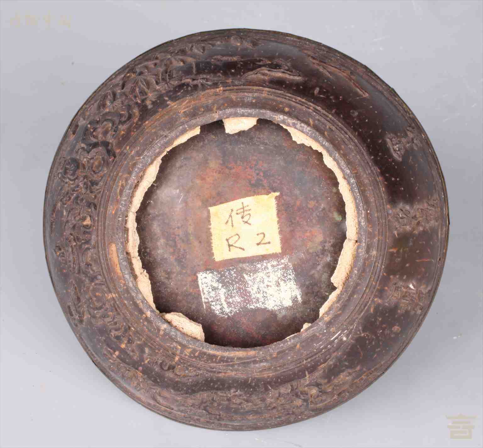 清雕仕女仙鹤纹套锡椰壳碗