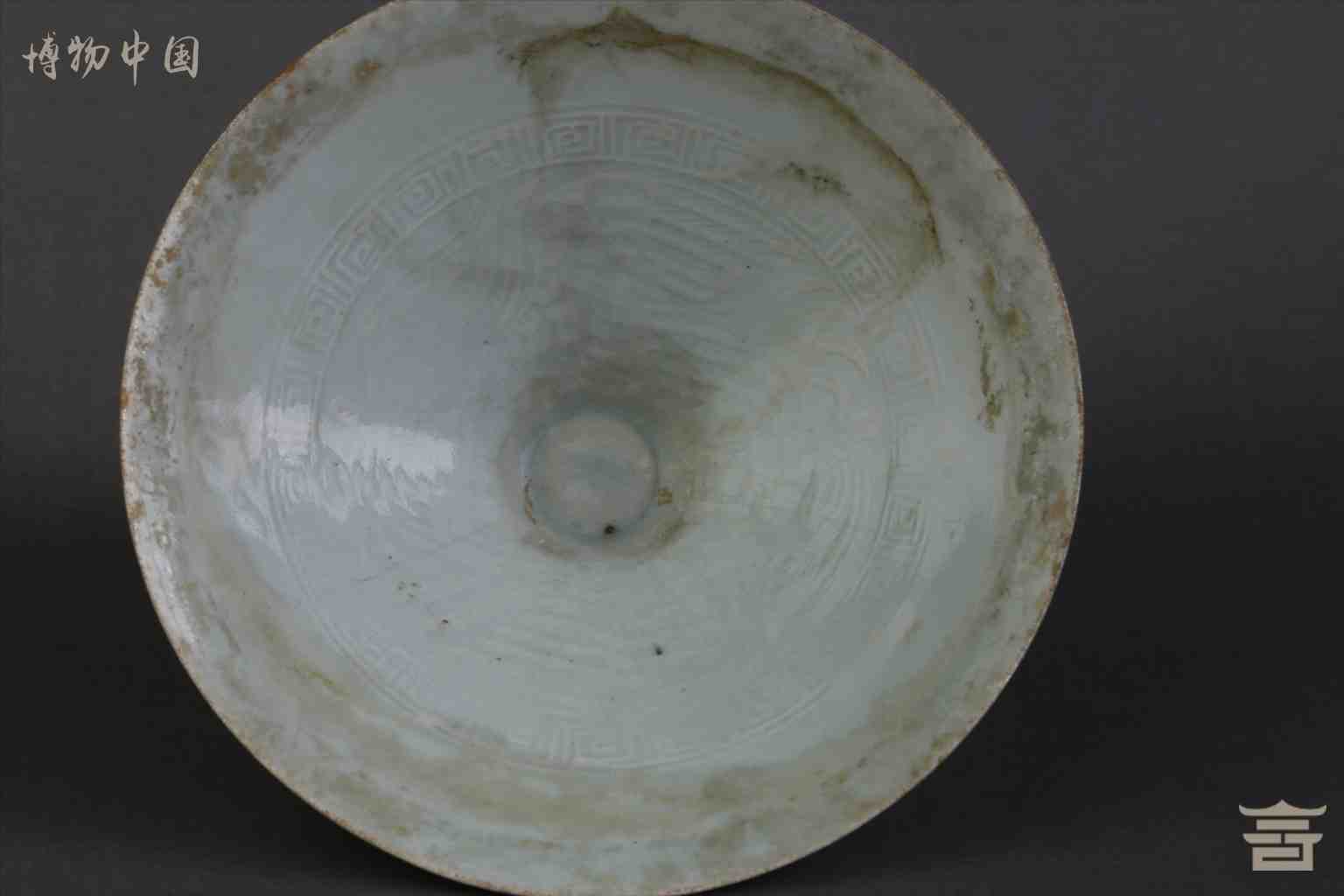 > 宋湖田窑青釉回纹喇叭形瓷碗