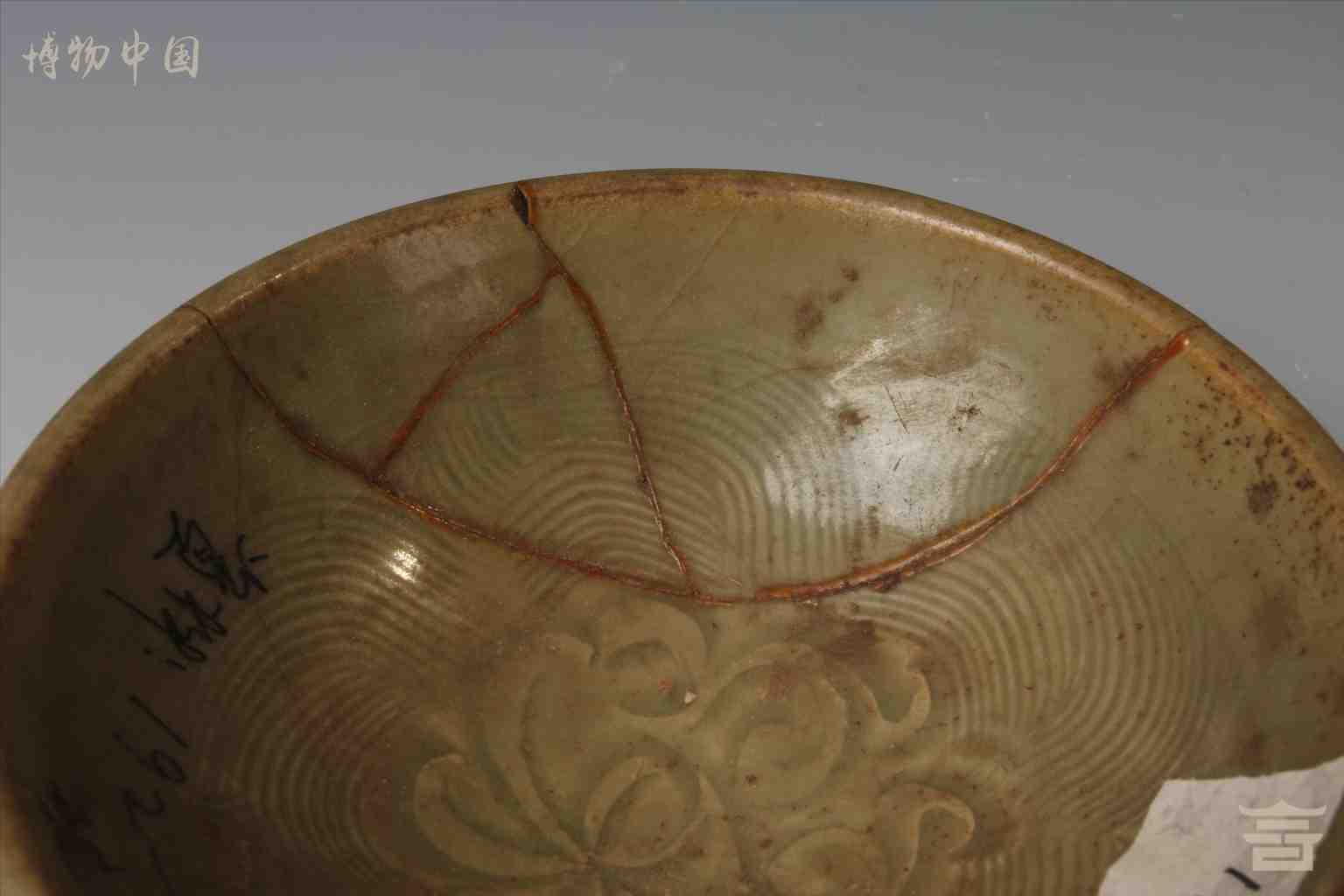 > 北宋耀州窑青釉刻花牡丹纹碗