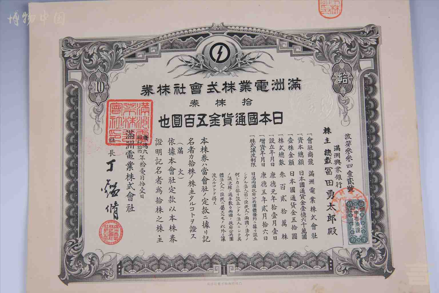 中华民国满洲电业株式会社十株劵