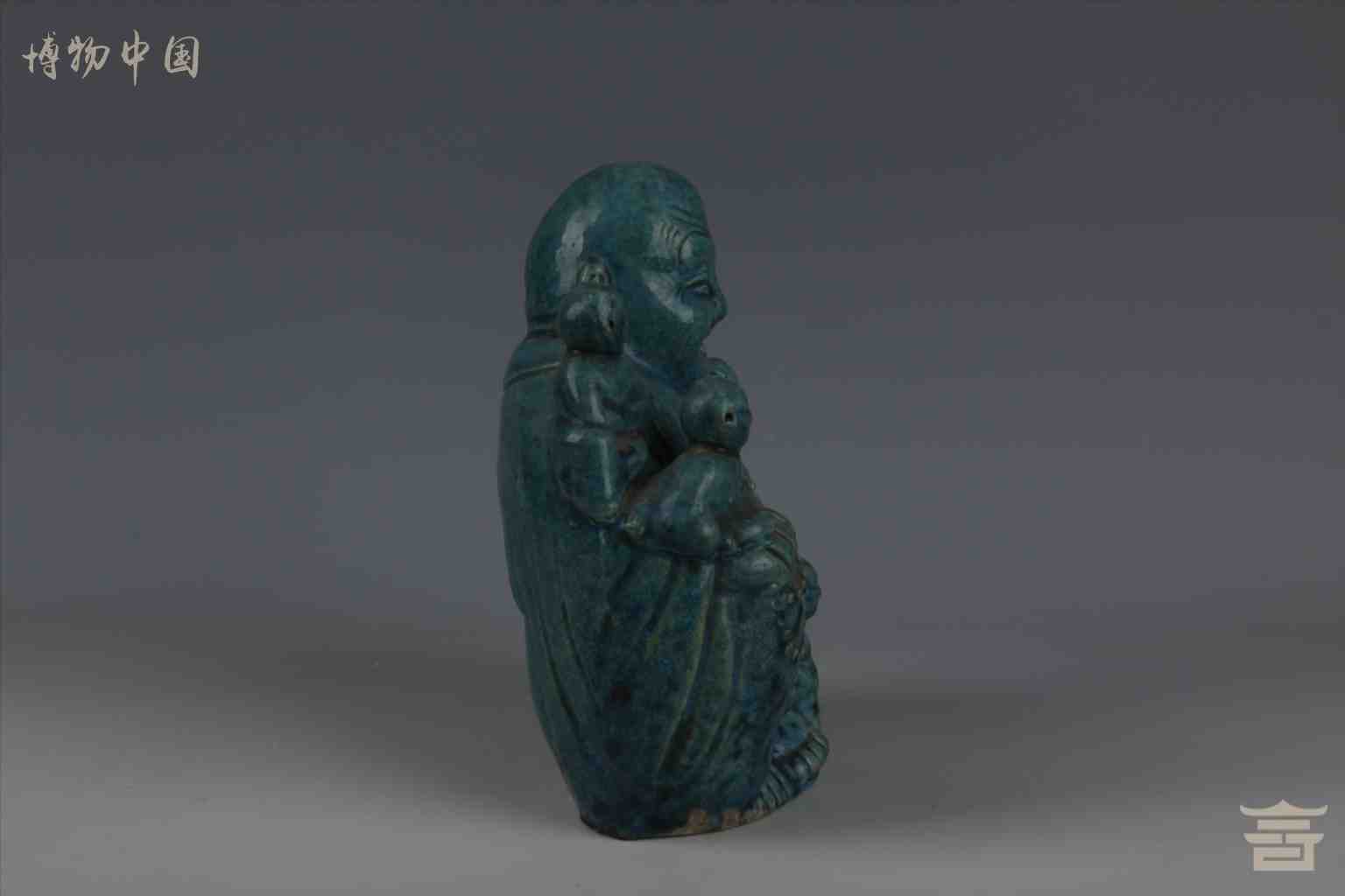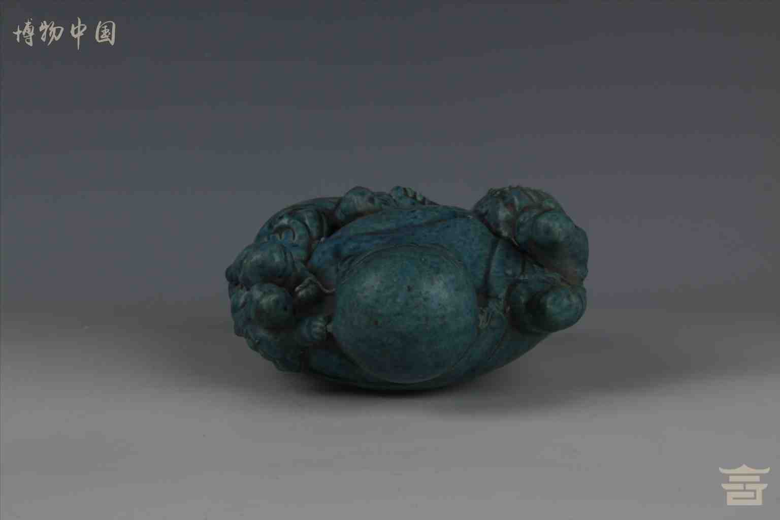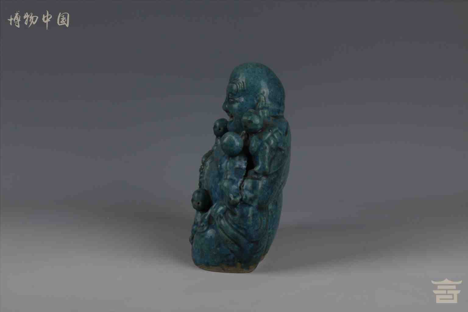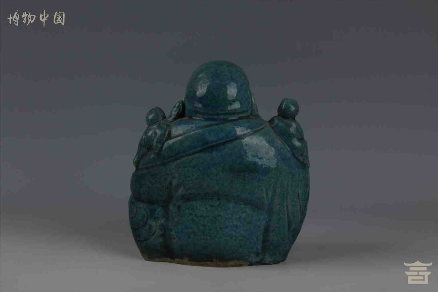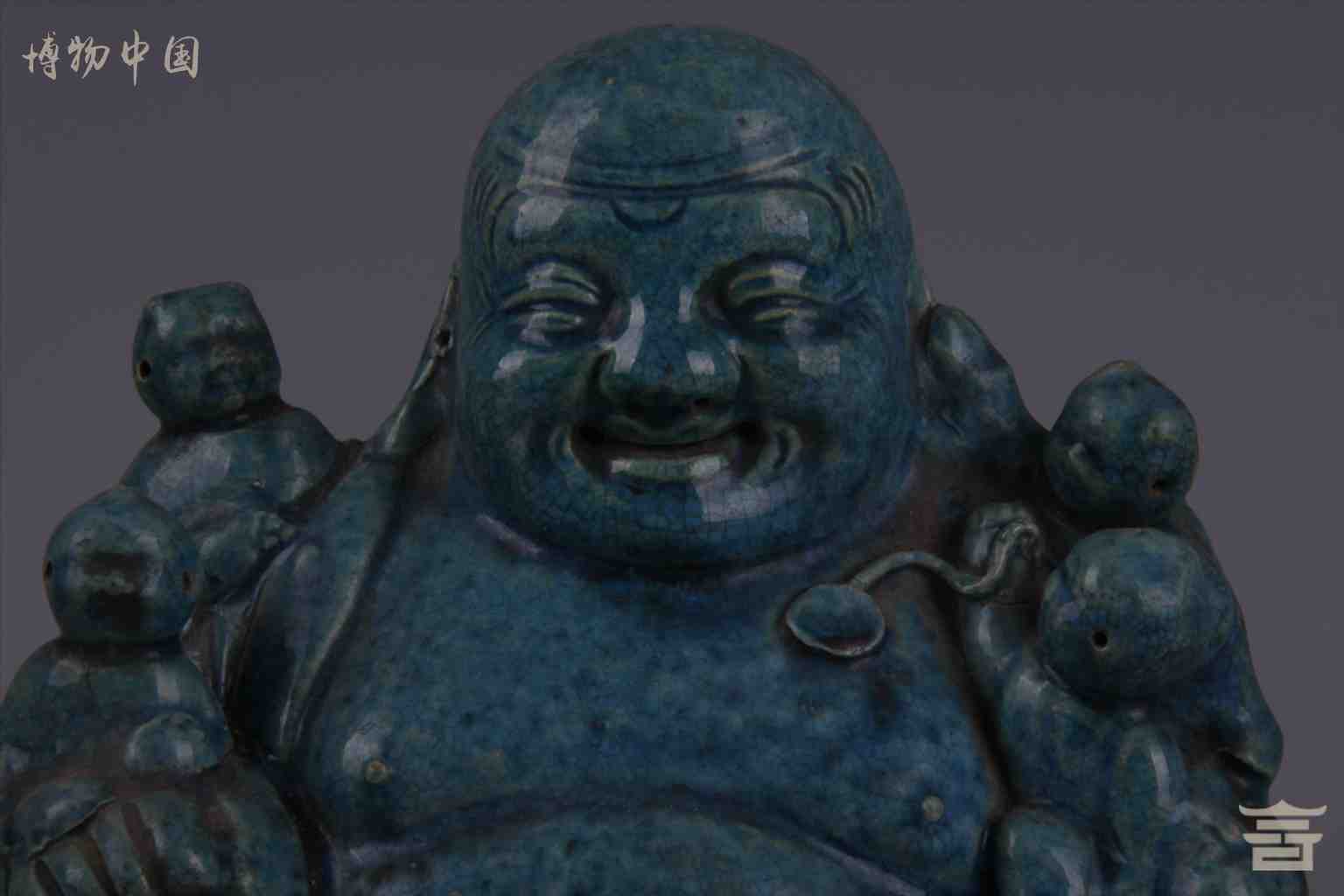 > 清蓝花釉五子登科弥勒佛瓷坐像