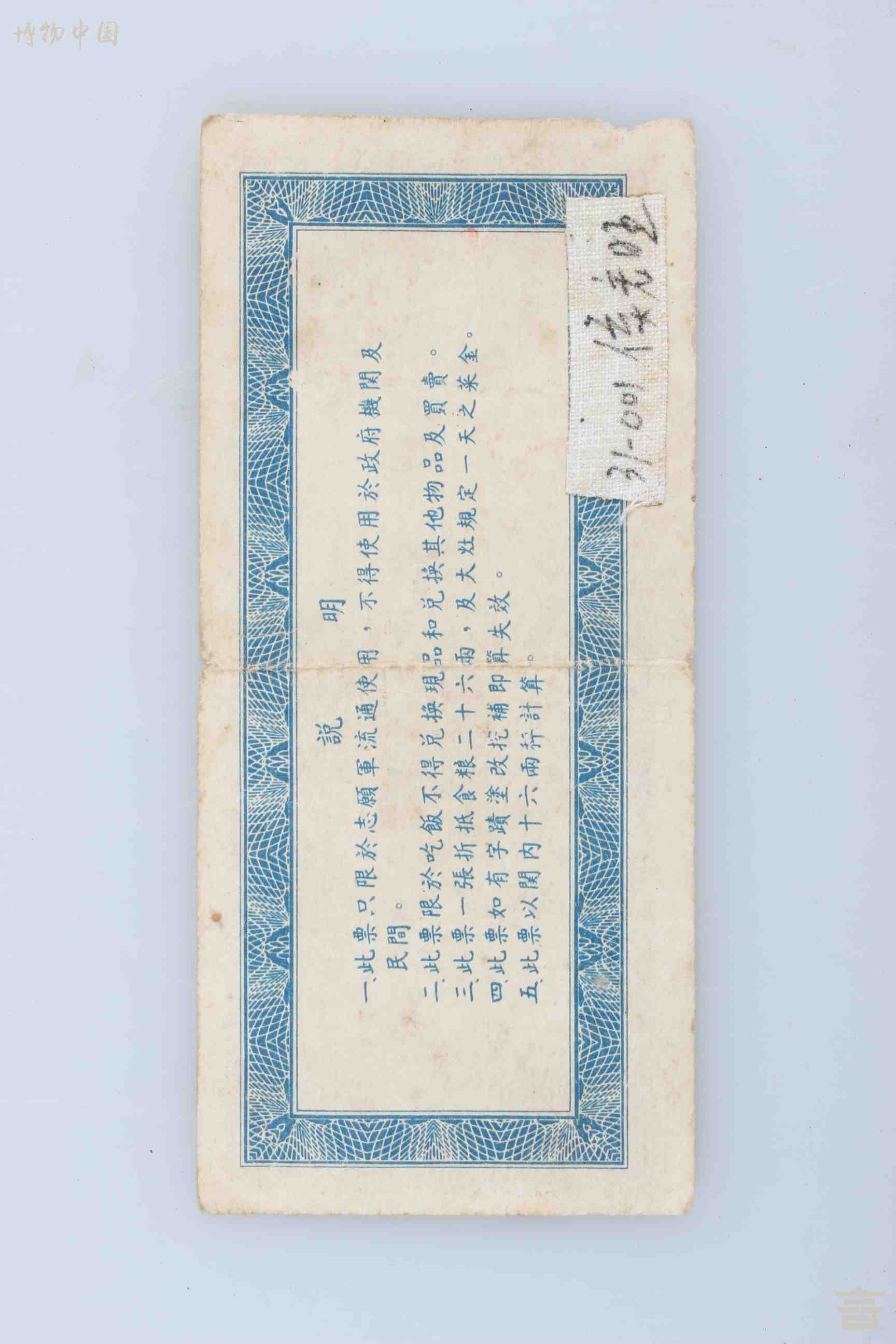 > 1953年侯启旺保存的中国人民志愿军后勤司令部大灶饭票