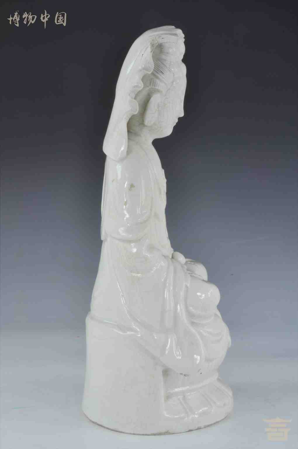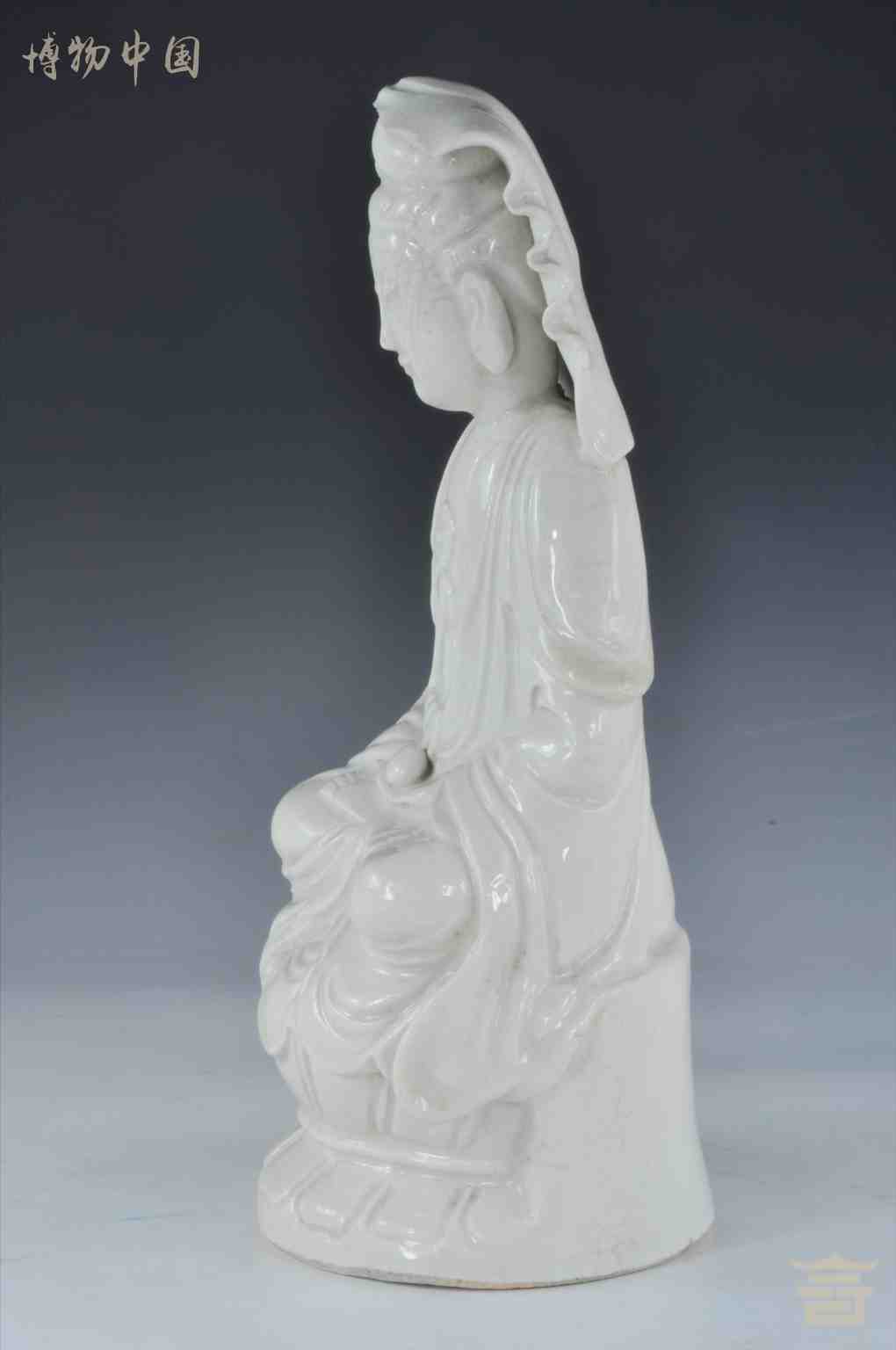> 清德化窑白釉莲花座观音坐像