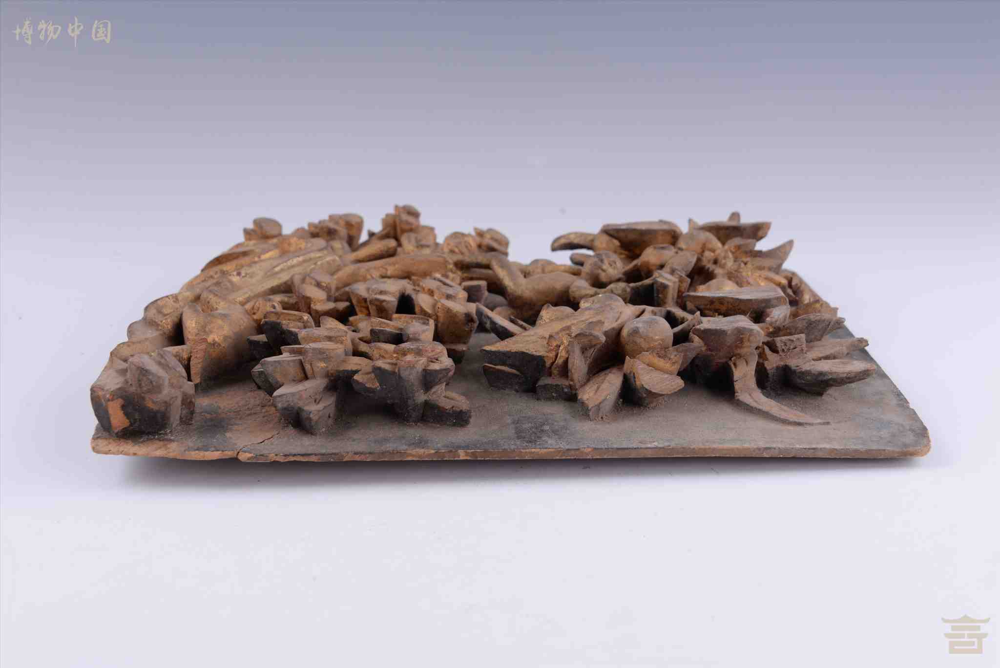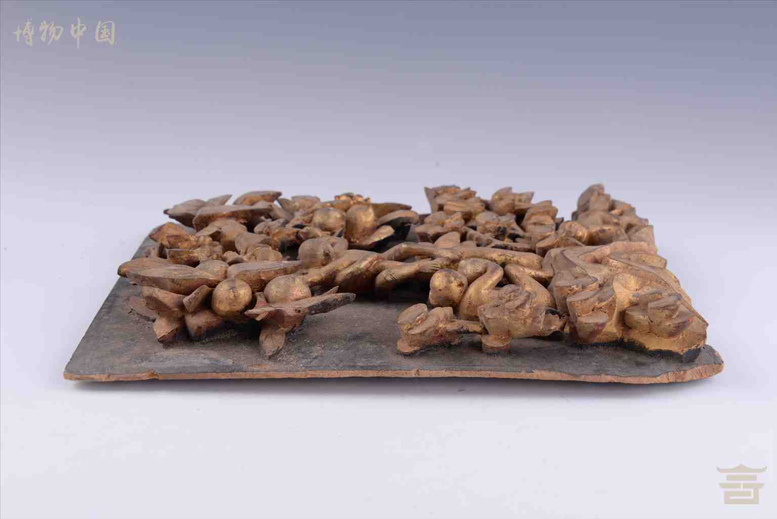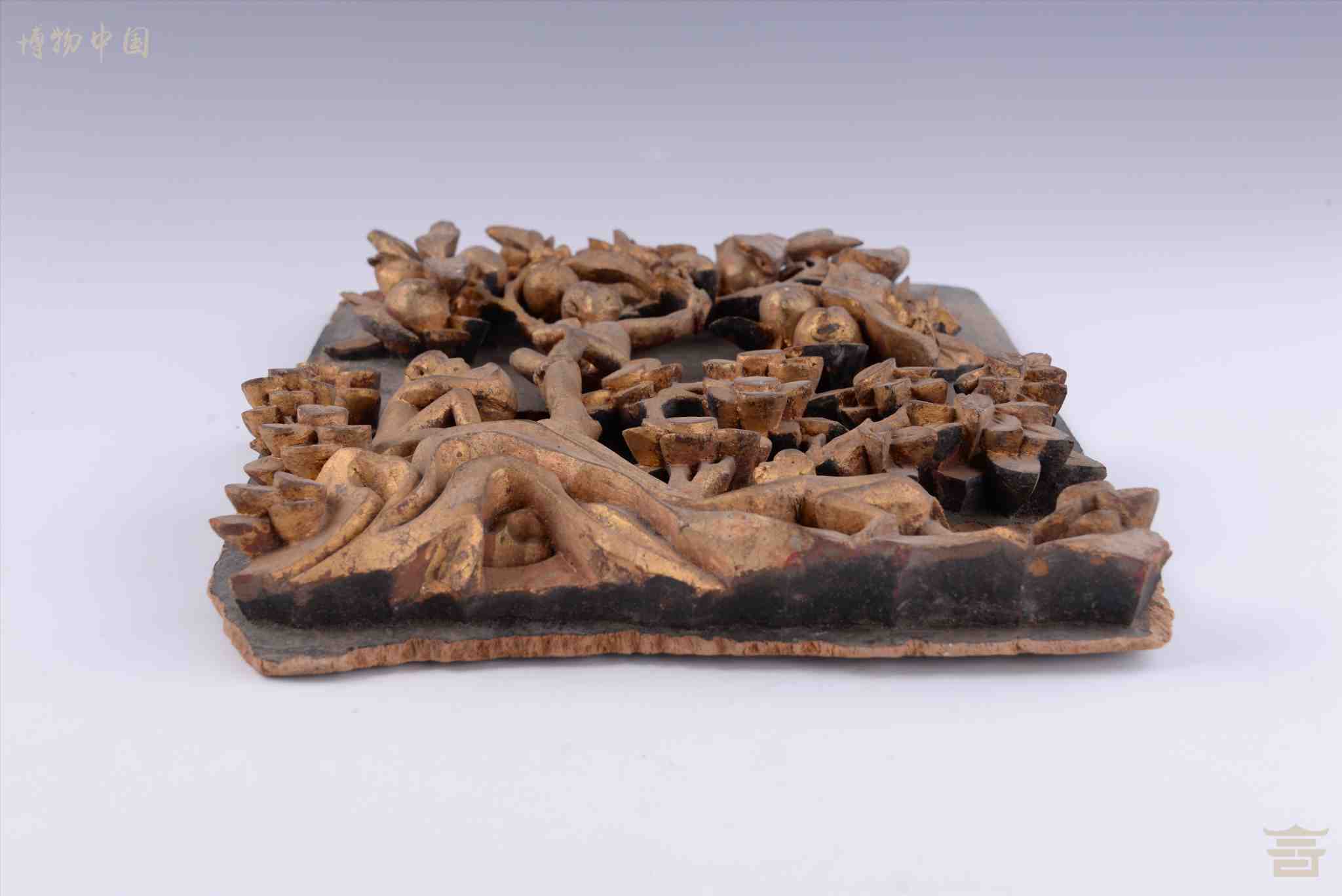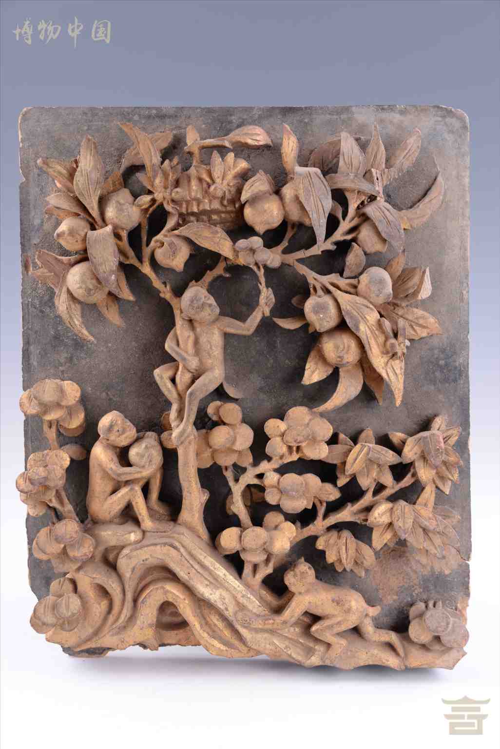 清漆金博古纹木雕花板