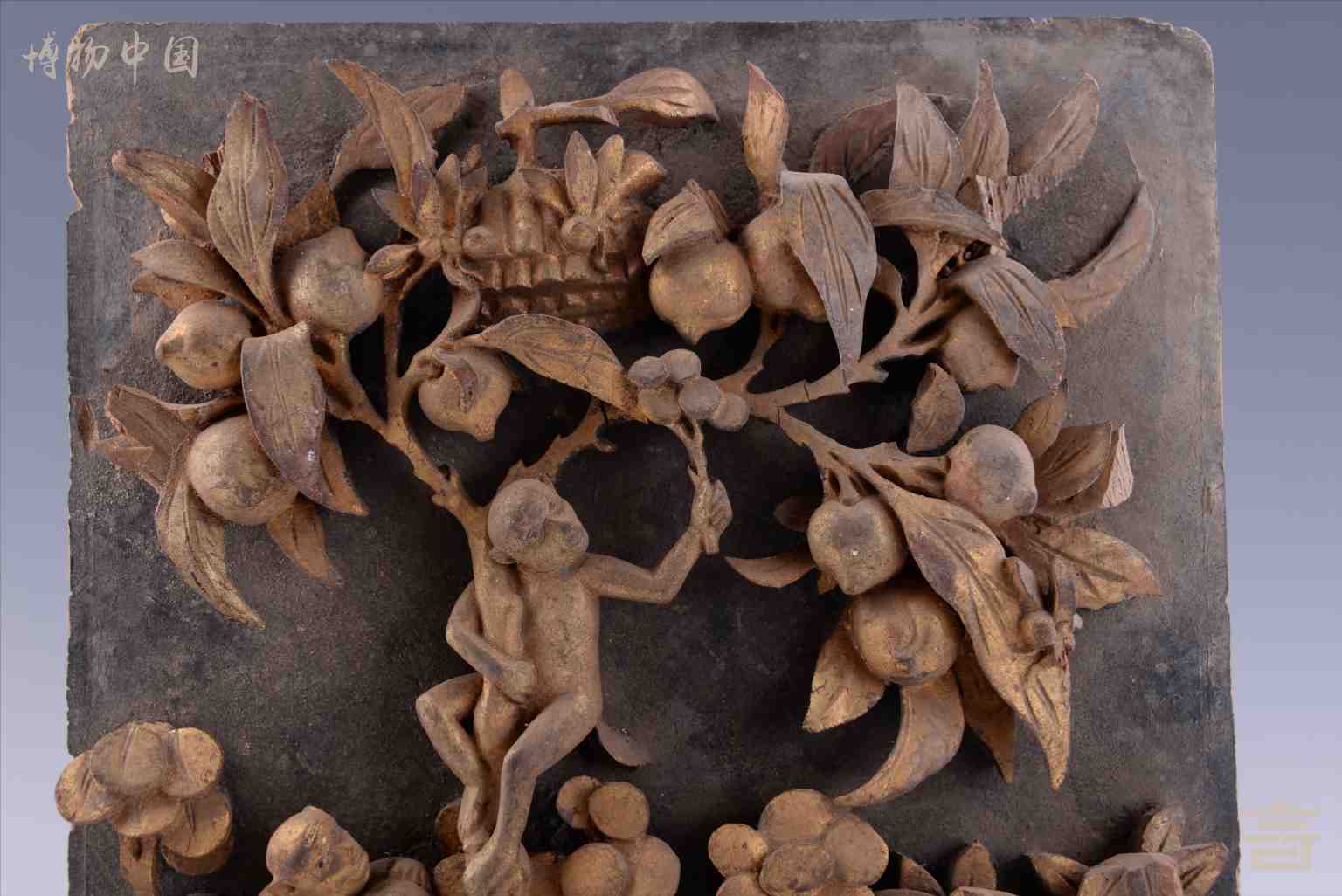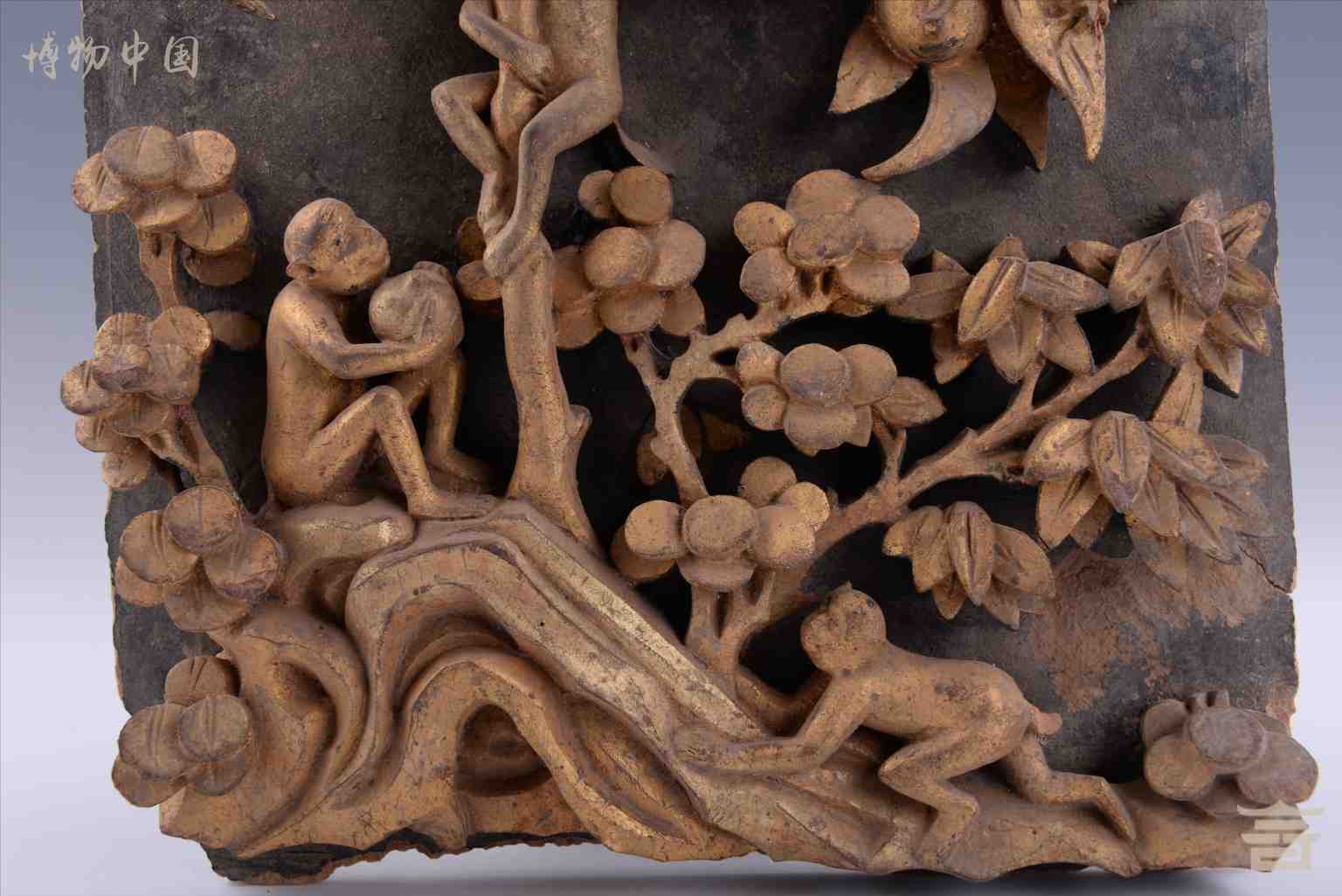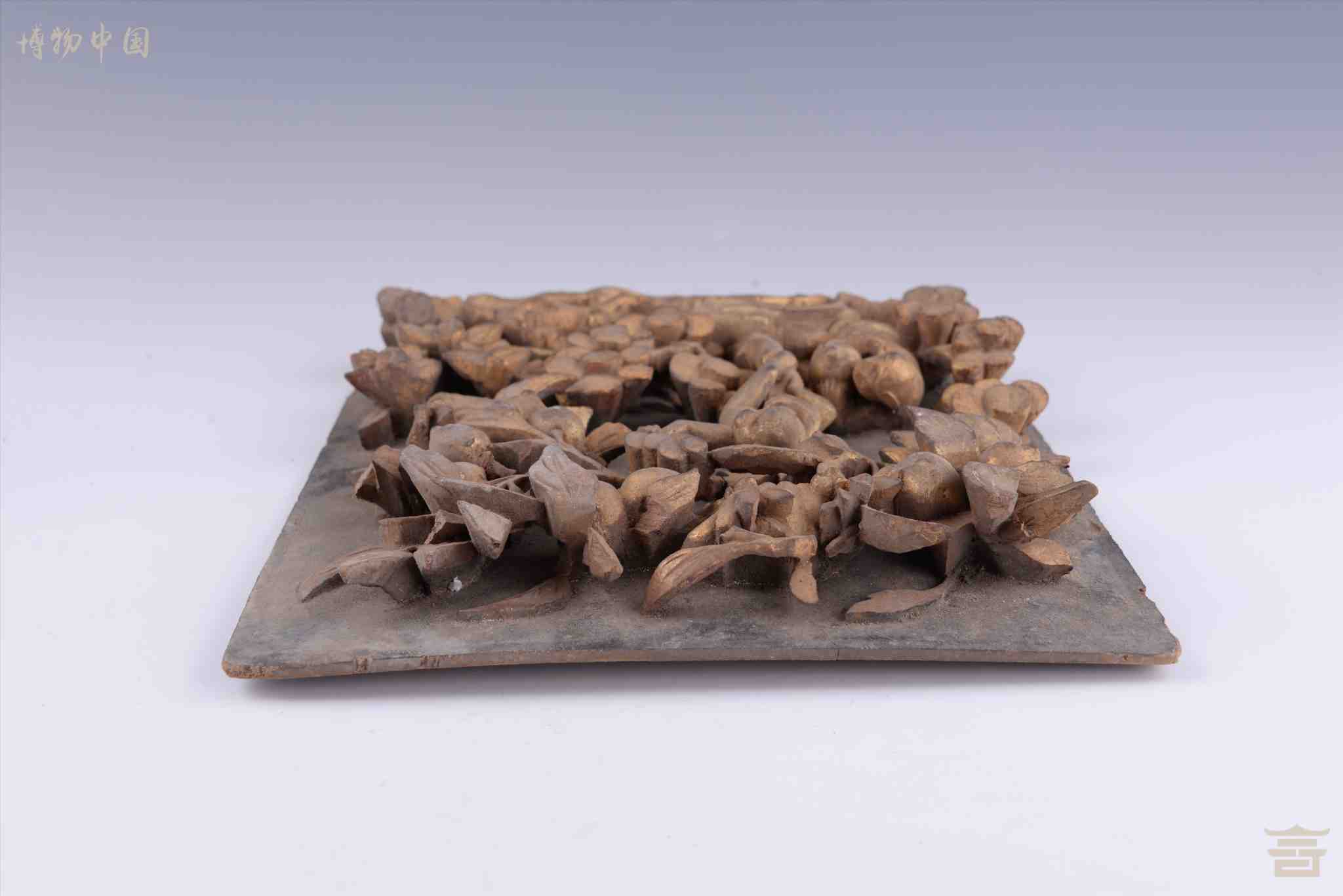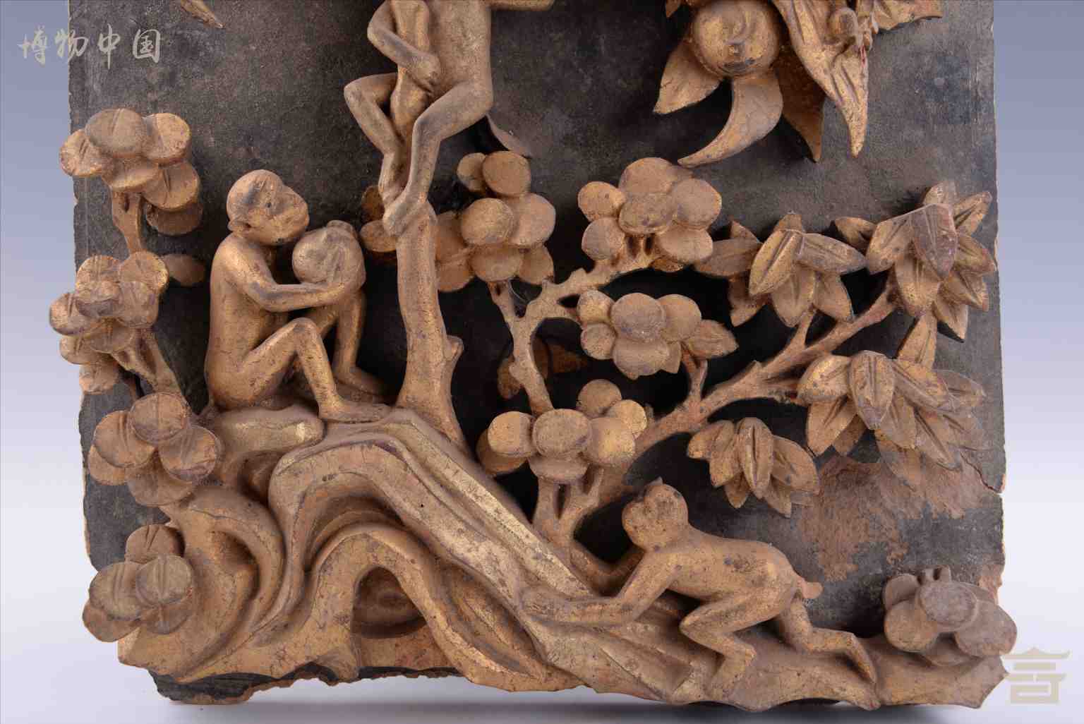 清漆金博古纹木雕花板