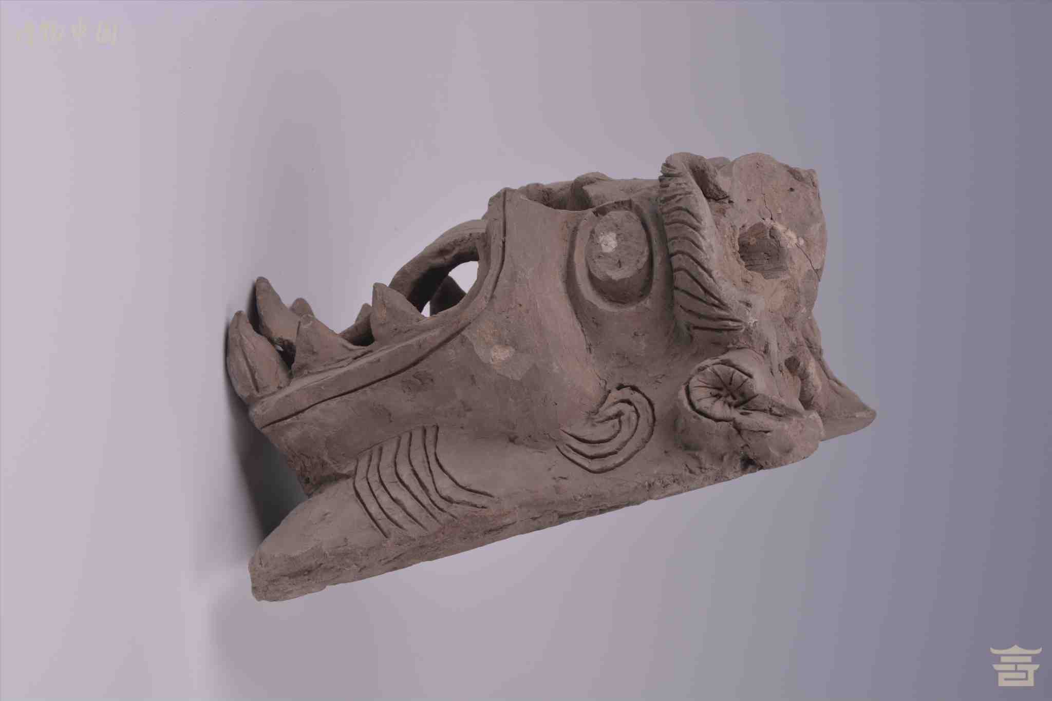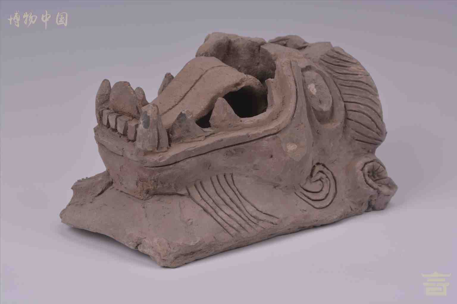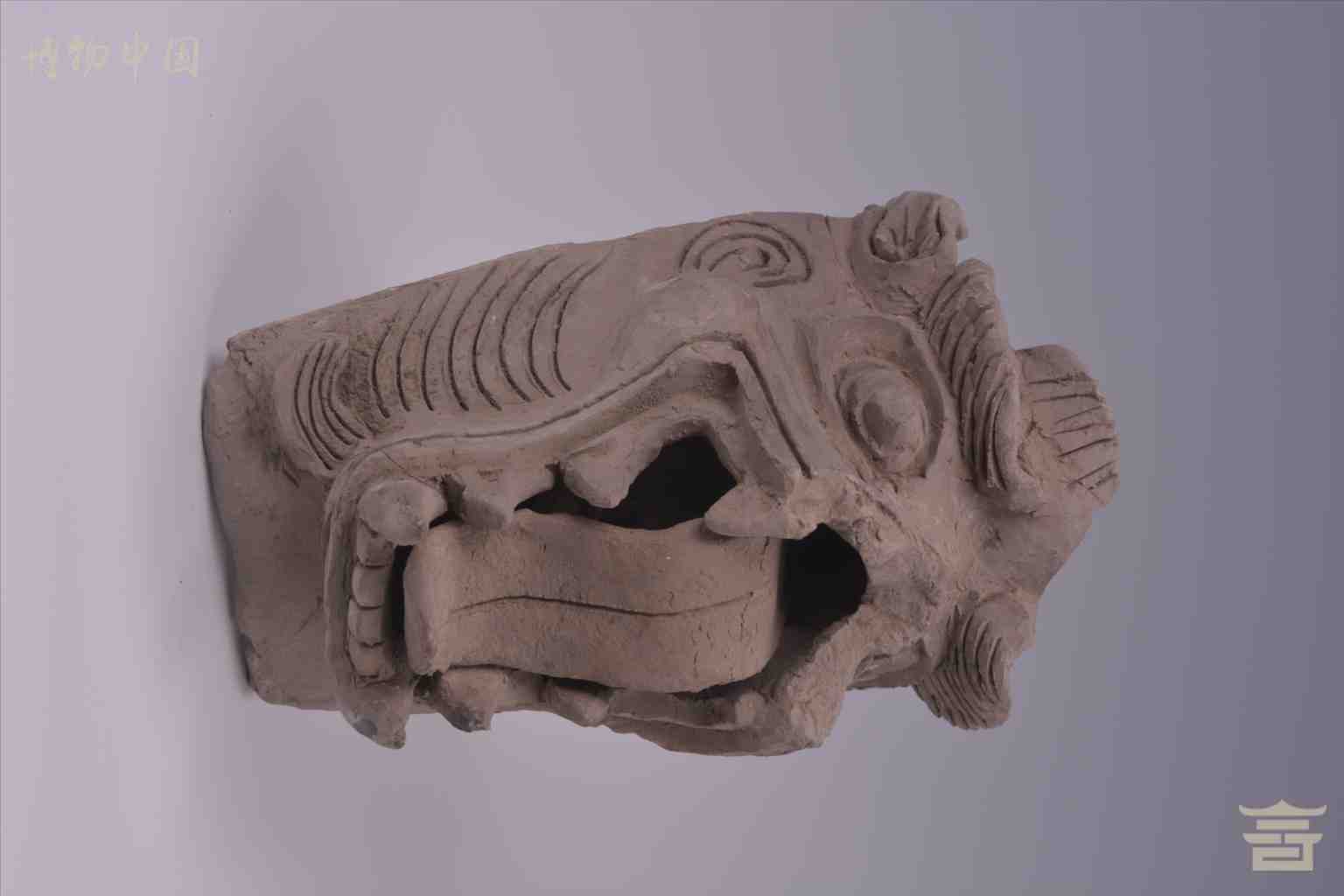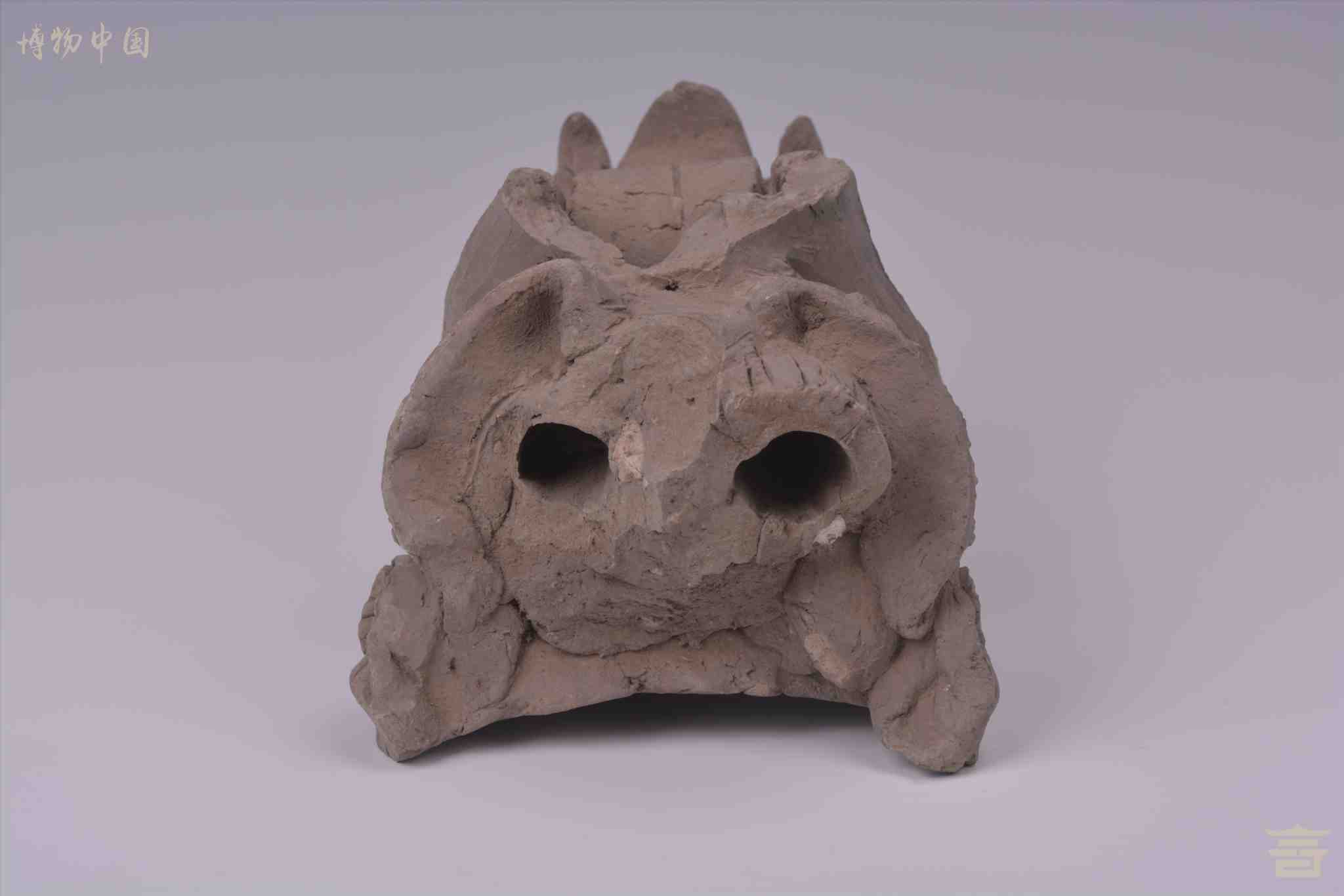 明兽首灰陶建筑构件