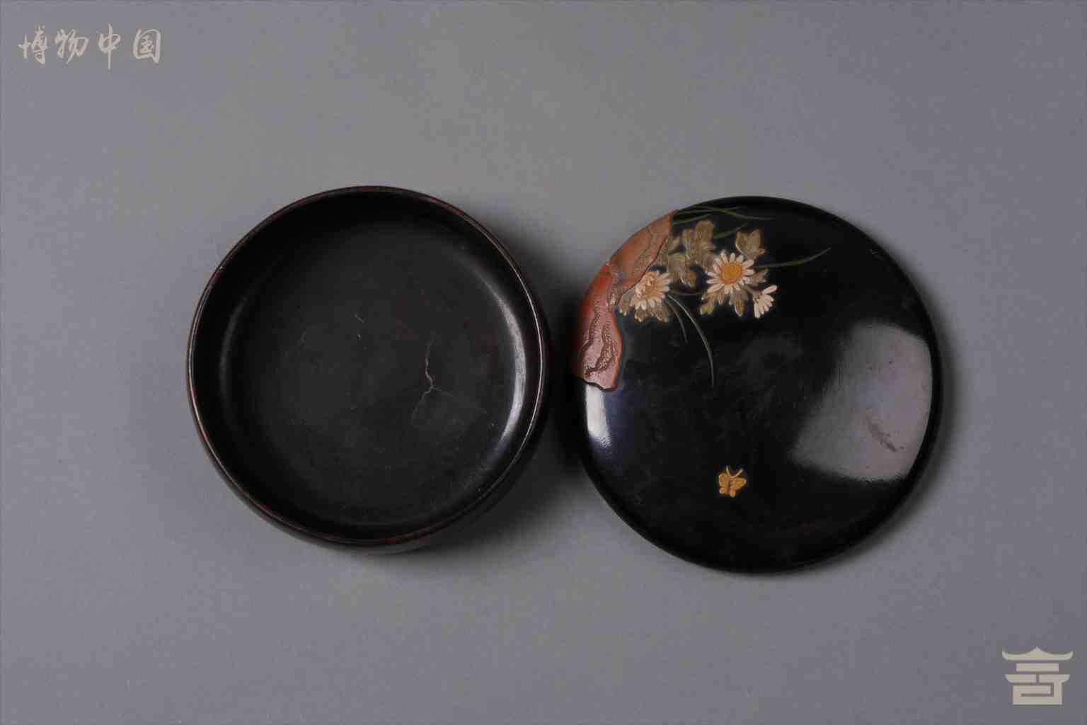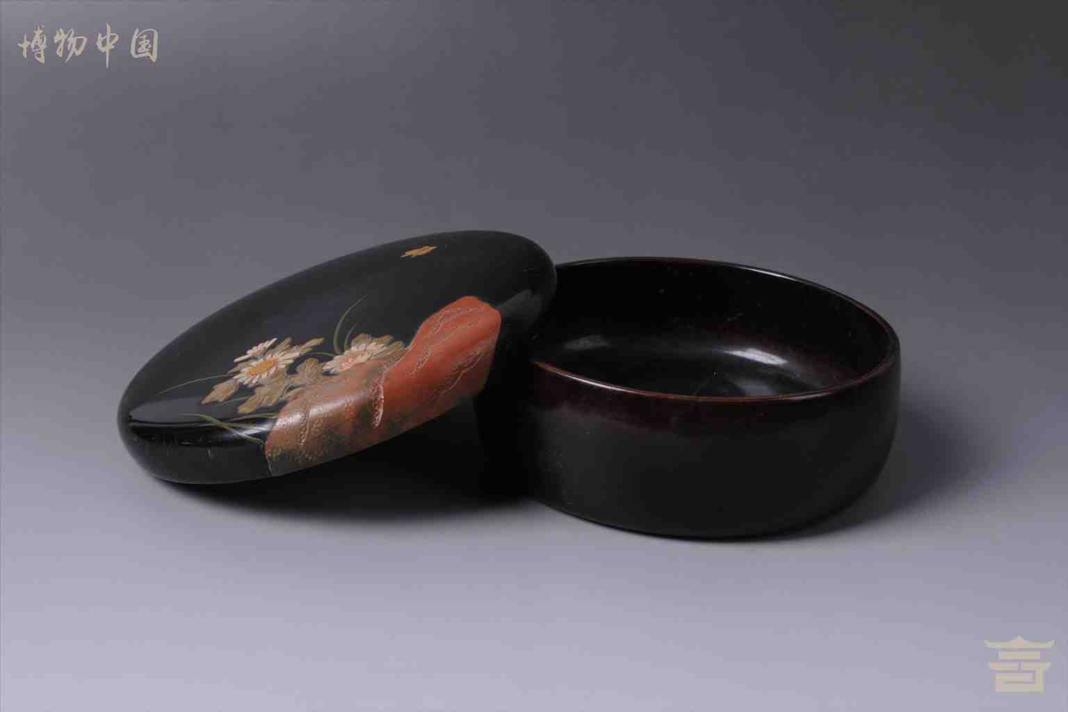 > 清堆漆浅雕矢菊纹盖盒