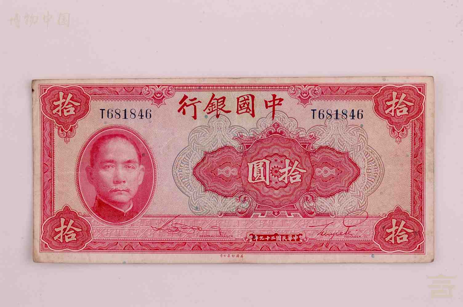 > 1940年中国银行发行拾圆纸币