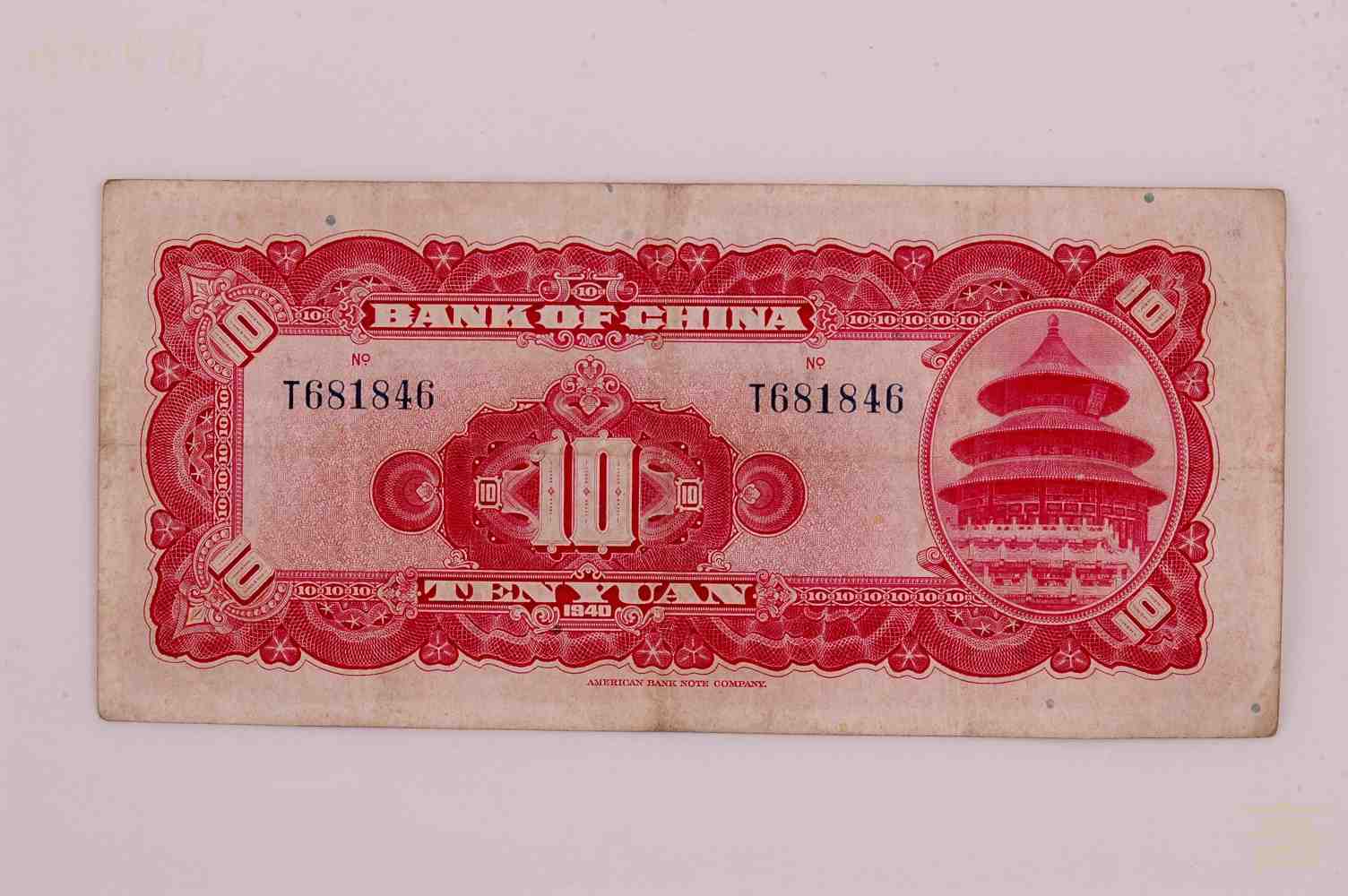 1940年中国银行发行拾圆纸币