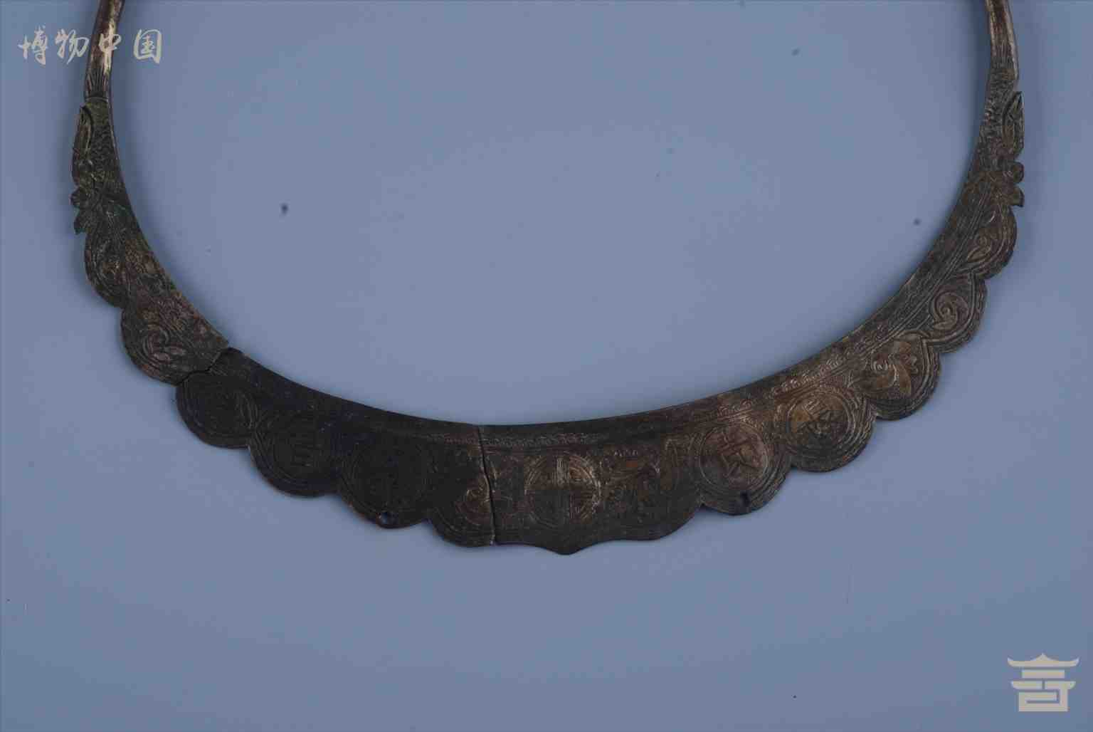 > 民国 壮族錾刻"长命富贵"花卉纹银项圈(残)