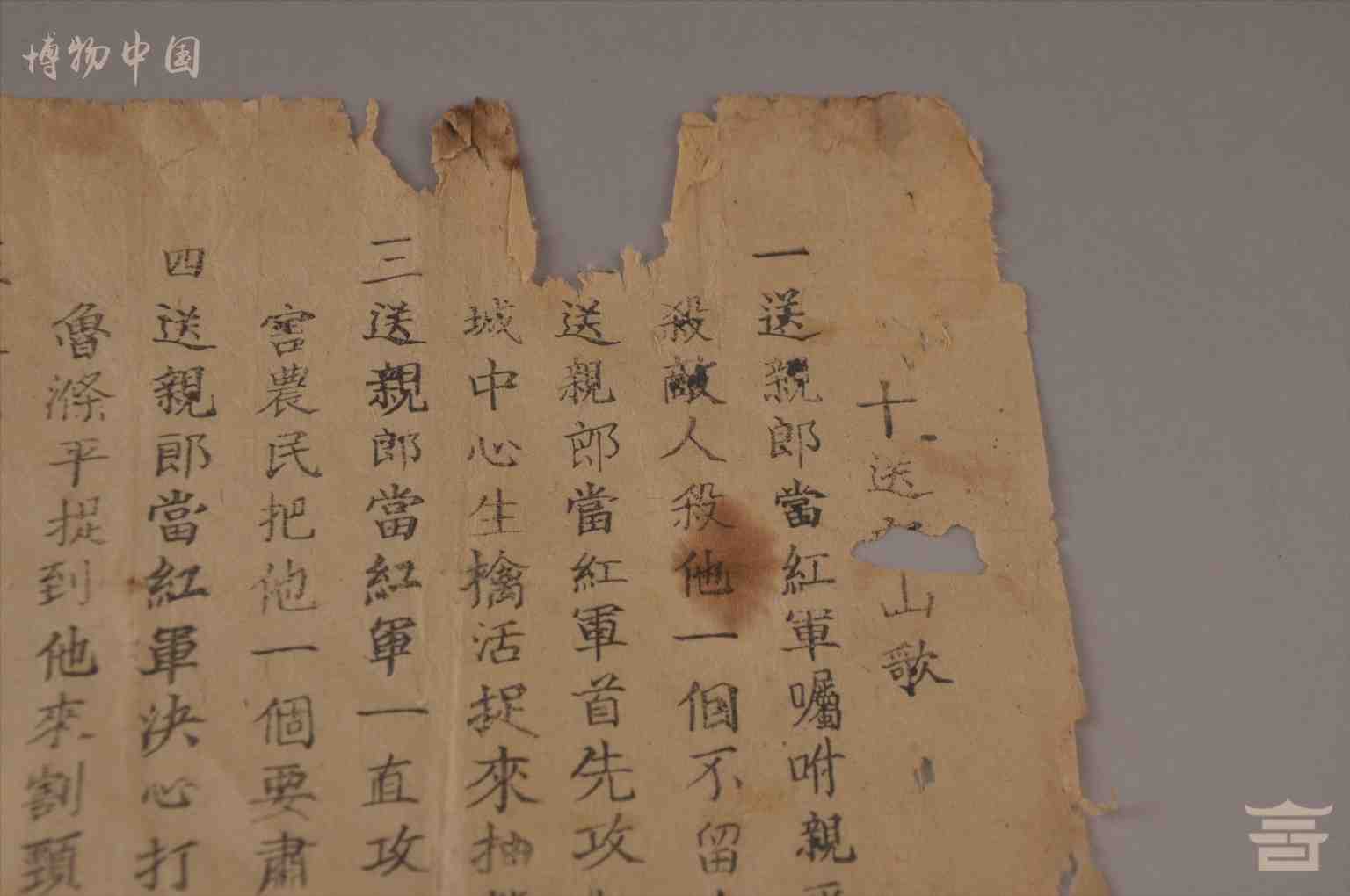 第二次国内革命战争时期兴国第三区苏维埃政府印制的《十送郎山歌》